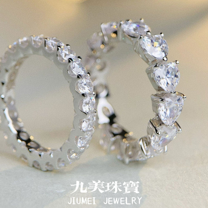 心形爱心满钻HW排戒欧美跨境爆款叠戴指环爆闪s925纯银戒指女批发