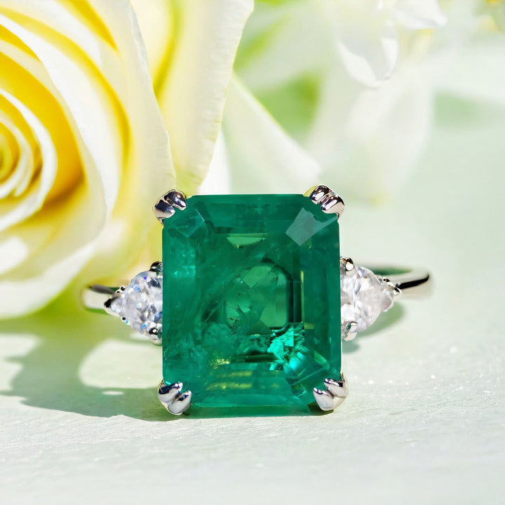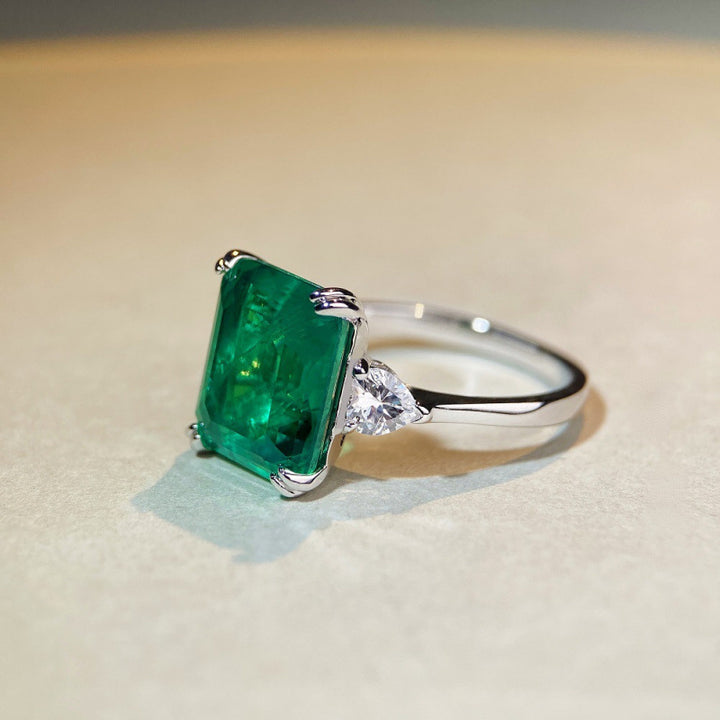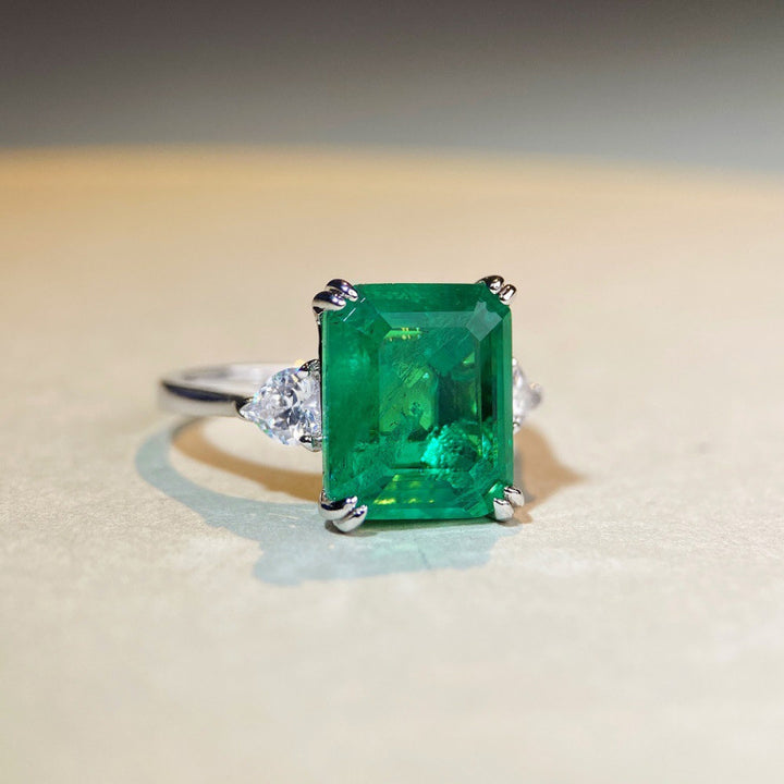 欧美跨境S925纯银戒指女木佐色祖母绿带棉带裂纹戒子精工珠宝批发