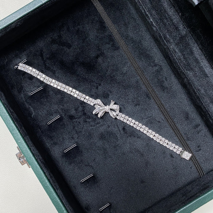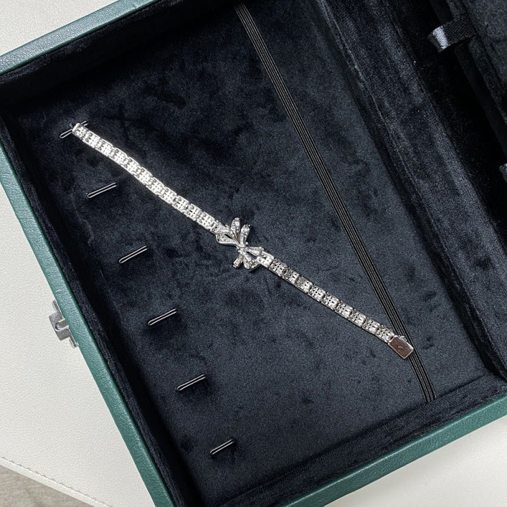 欧美跨境S925纯银蝴蝶结手链女HW同满钻豪镶百搭链子厂家直销批发