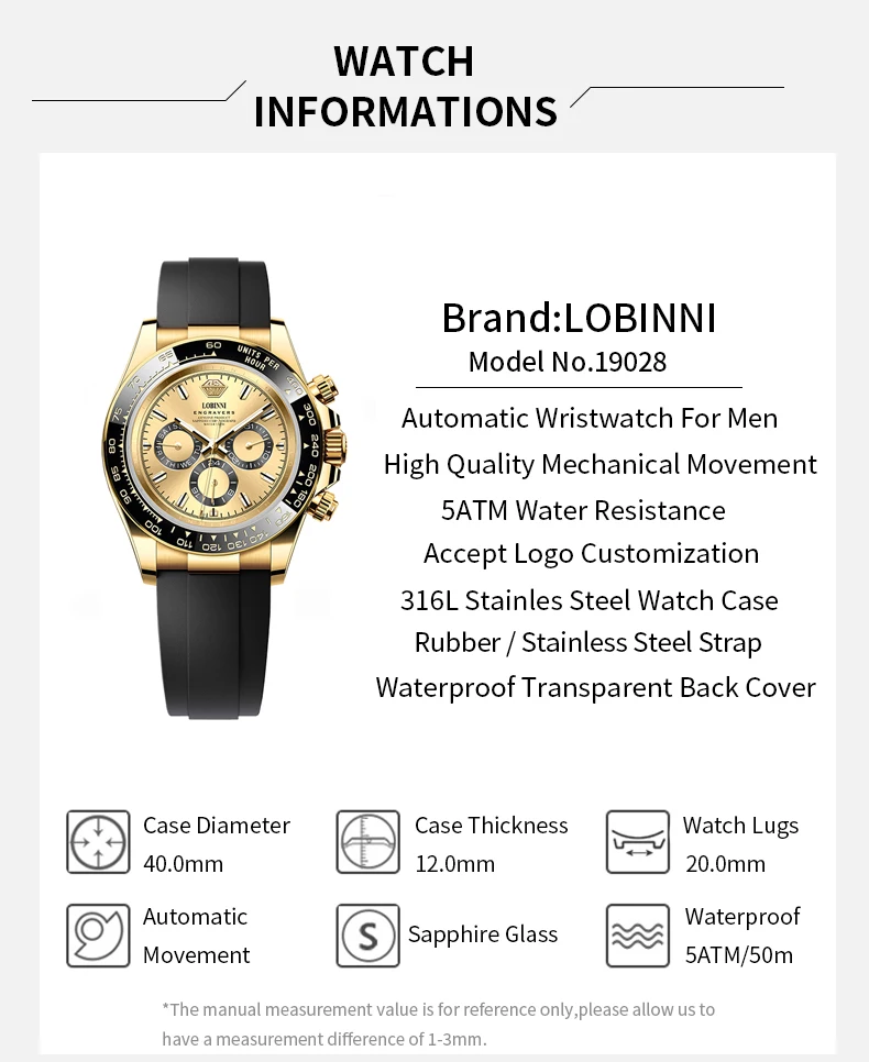 A: Our LOBINNI brand watches were established in 1963 with advanced high-tech production facilities and focus on producing high quality watches.