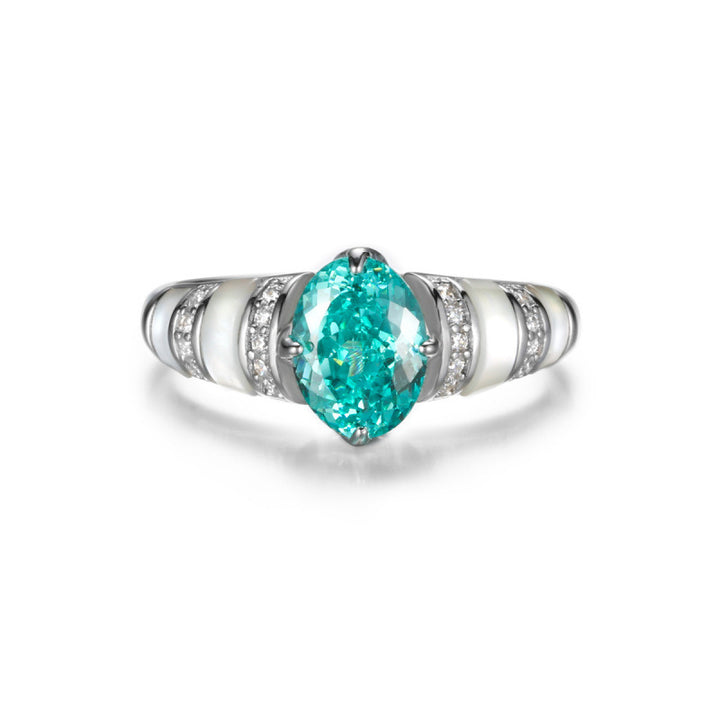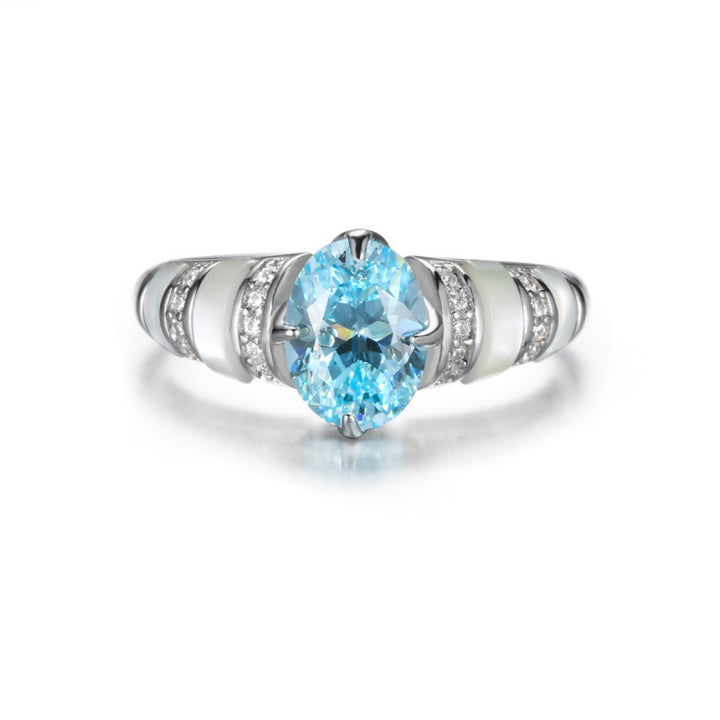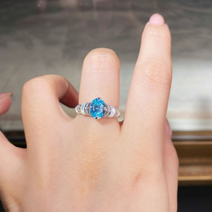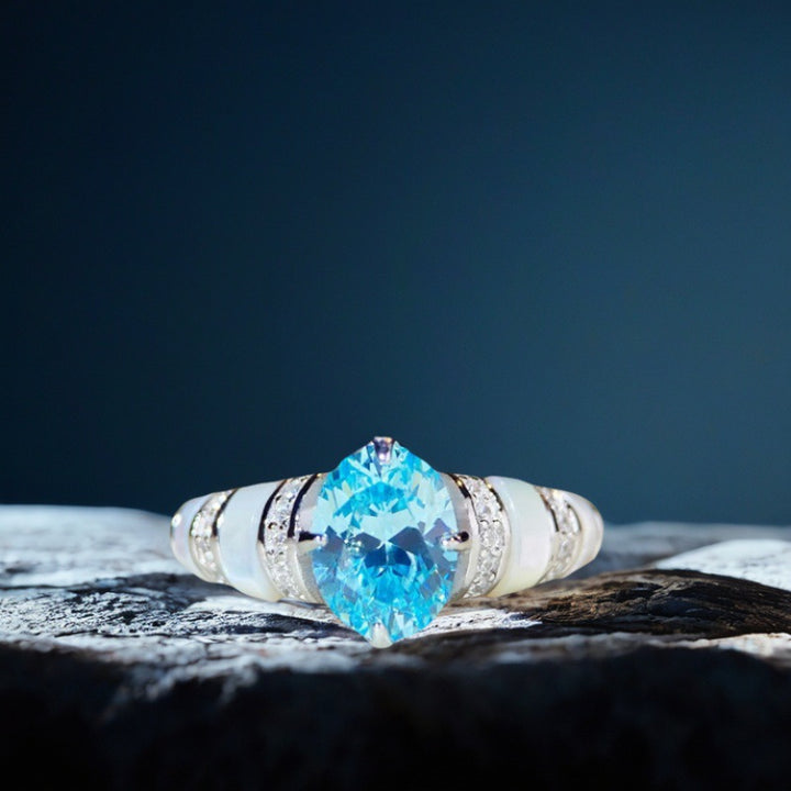 海蓝宝S925纯银贝母戒指女蓝色系列甜美时尚百搭ins风不掉色戒指