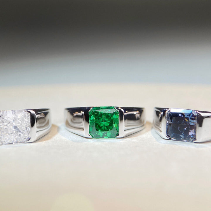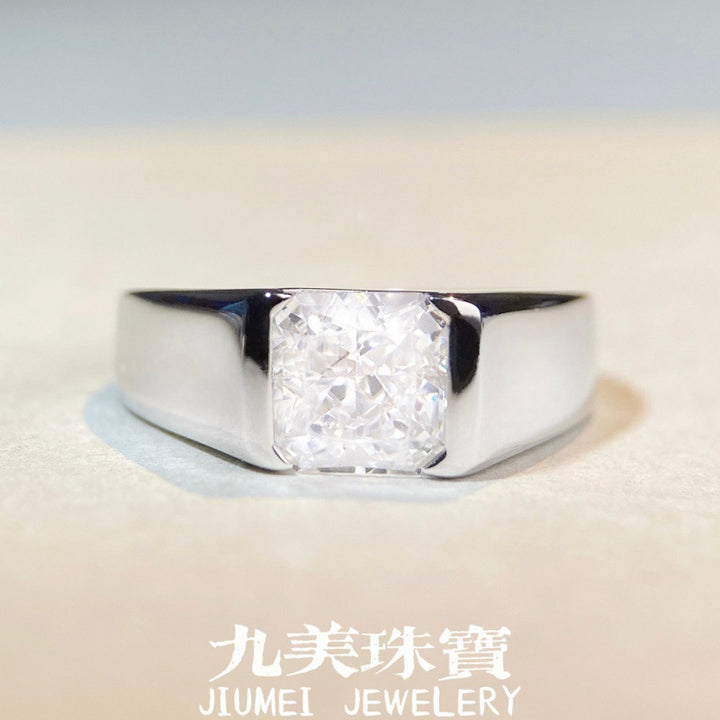 男款戒指925银简约光面锆石大男戒欧美跨境批发时尚3克拉戒指批发