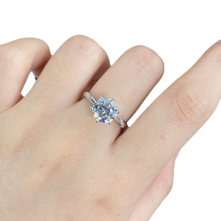 精工莫桑戒指S925银2克拉D色莫桑石戒指通灵经典六爪戒指厂家直销