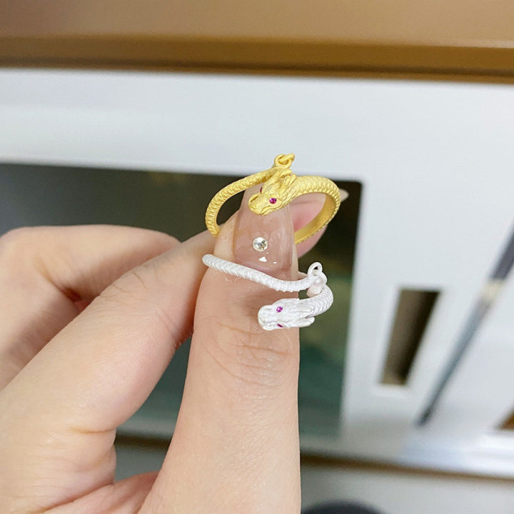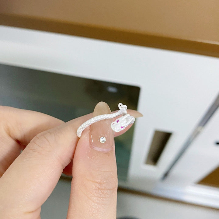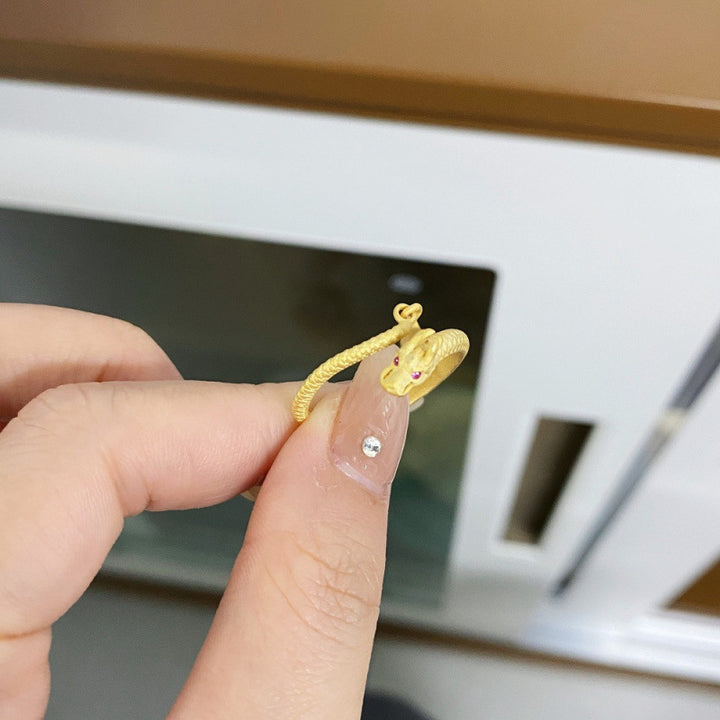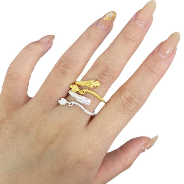 (订单)S925纯银戒指女开口可调节神龙摆尾戒指红刚玉磨砂戒指
