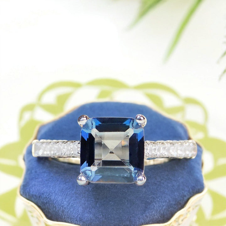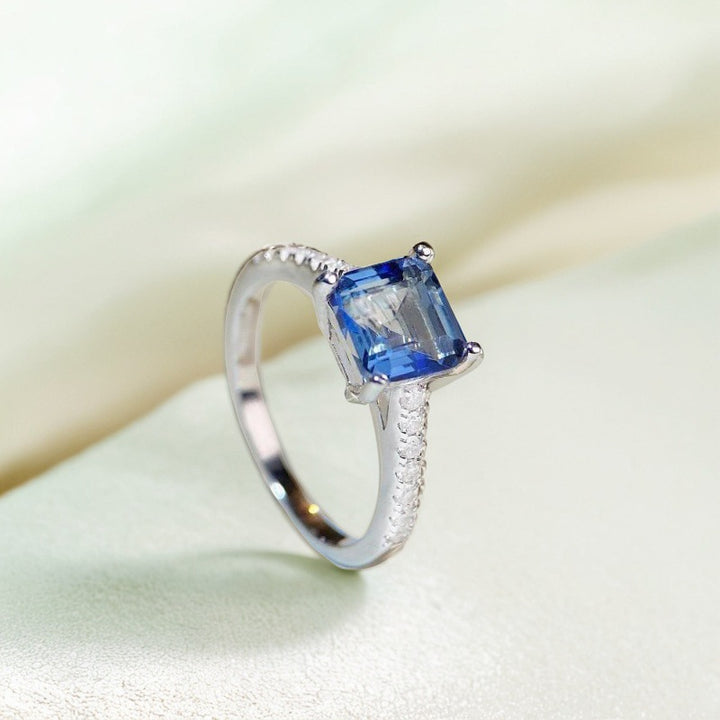 跨境珠宝天然蓝晶戒指S925纯银正方方包戒指批发水晶戒指