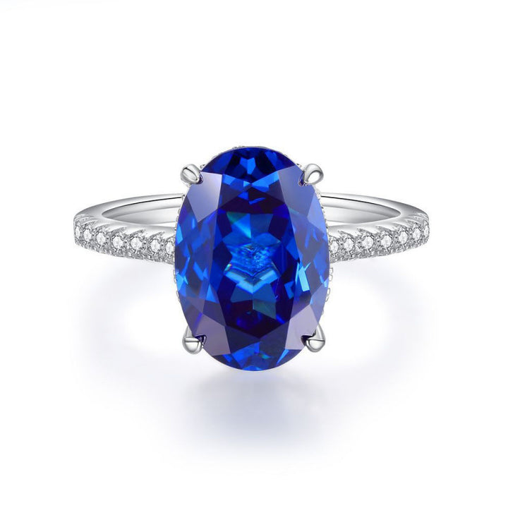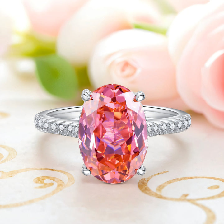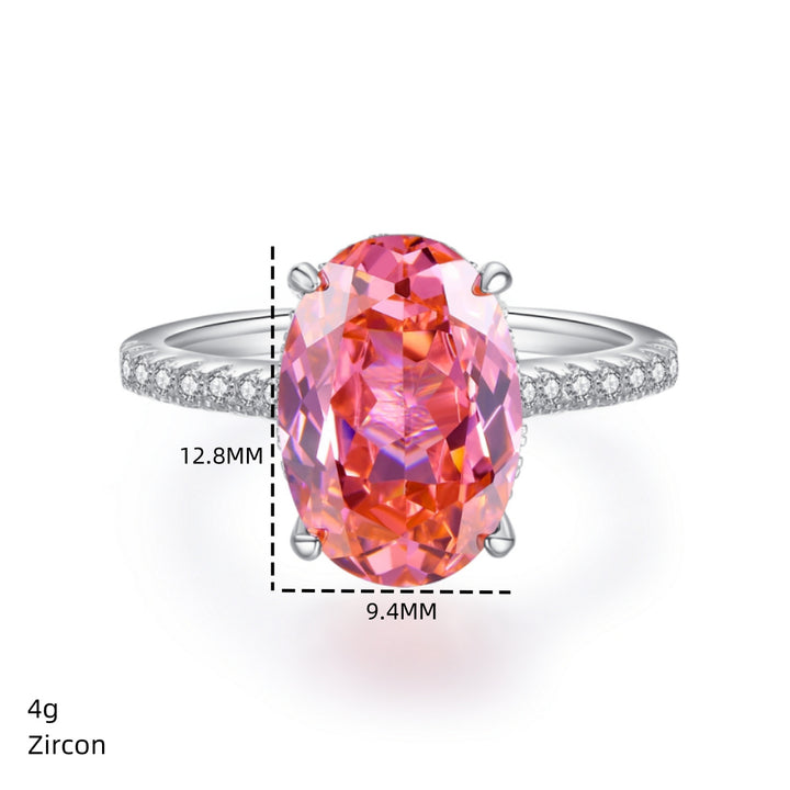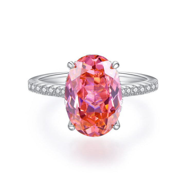 跨境珠宝帕帕拉恰S925纯银戒指女淡粉色鸽子蛋6克拉钻戒满钻