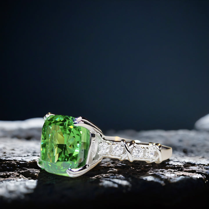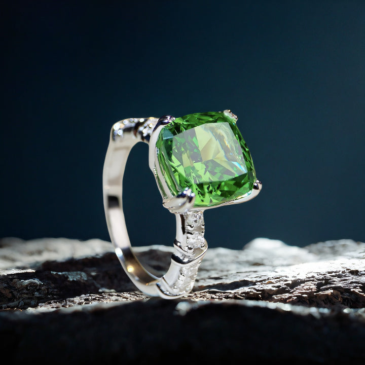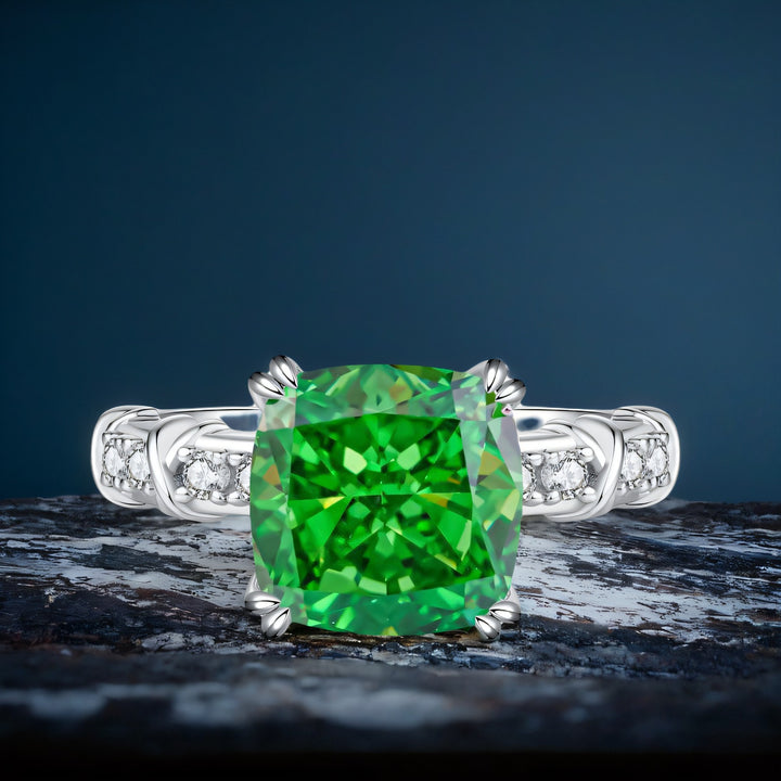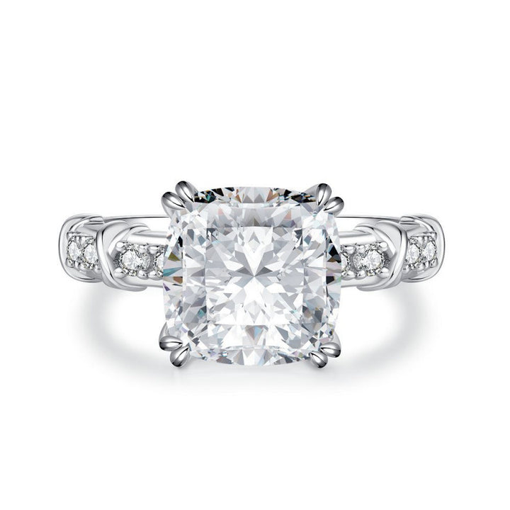跨境珠宝925银高碳钻祖母绿交叉仿真钻戒女简约时尚ins风冰花锆石
