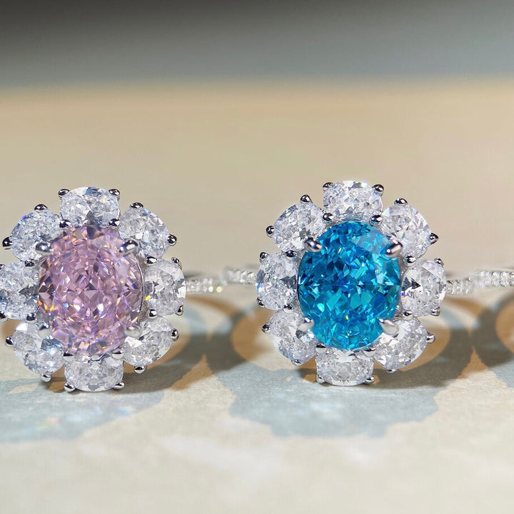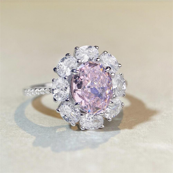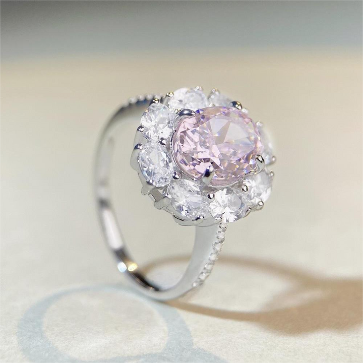 8A high carbon diamond ring S925 pink ring popular egg shaped pigeon egg diamond ring wedding ring
