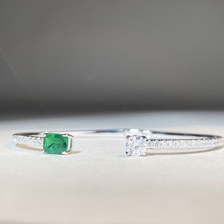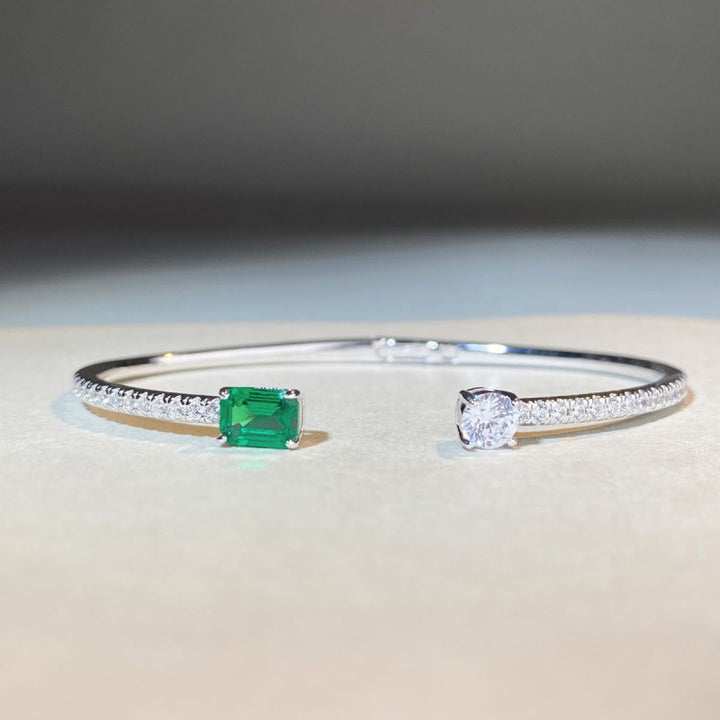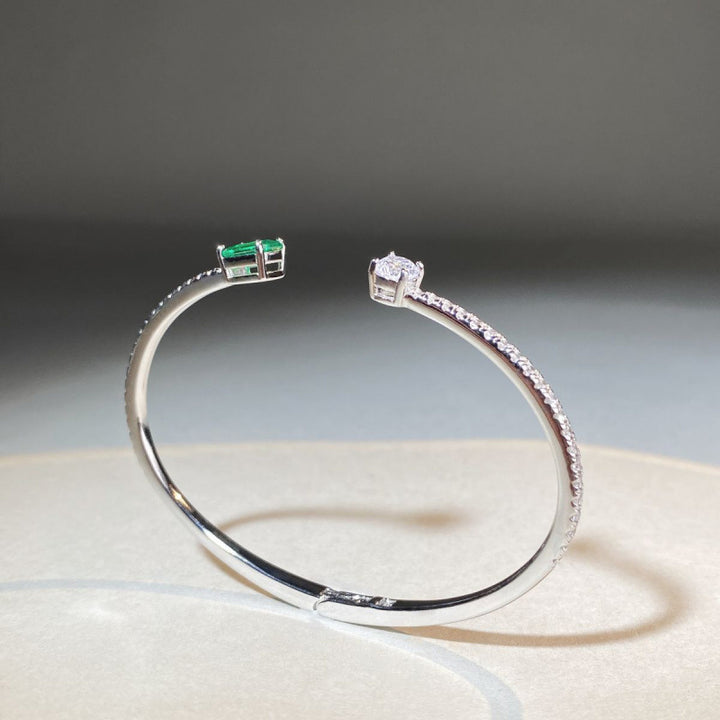 925纯银手镯女实心手镯开口可调节祖母绿镯子简约精工镀18K金款式