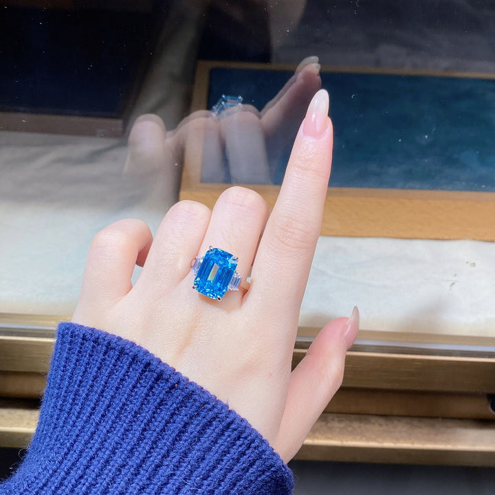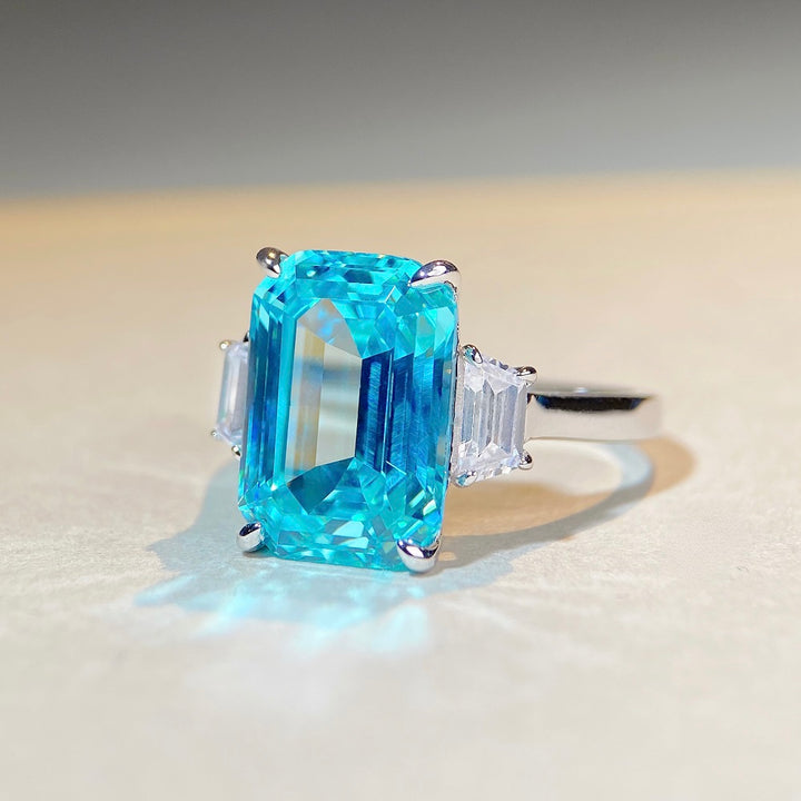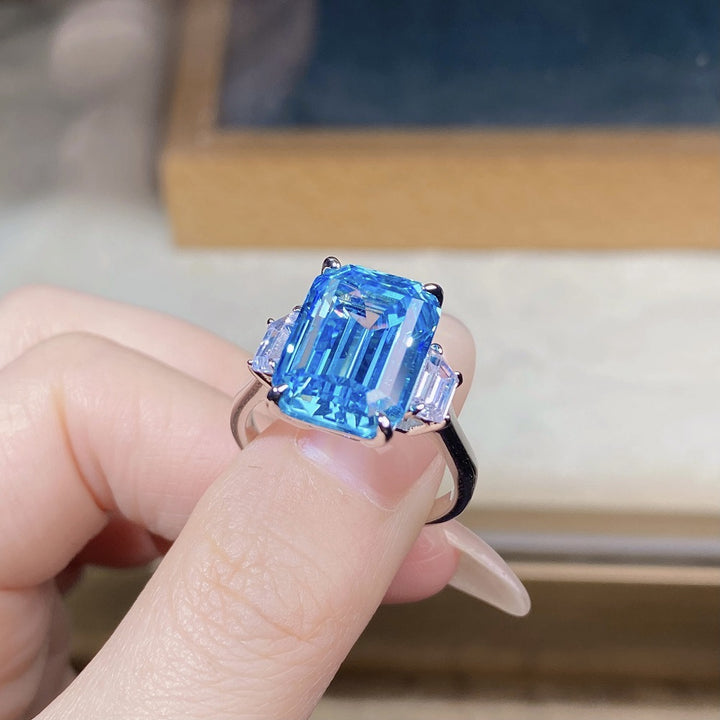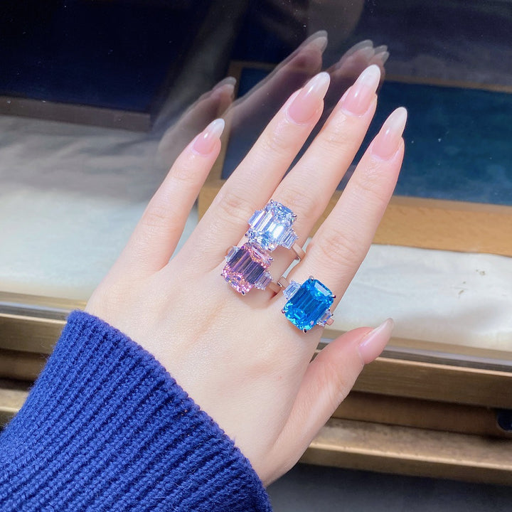 925 silver ring, rock sugar sea blue treasure square pagoda, emerald green cut plated platinum rhodium gold, non fading ring for women