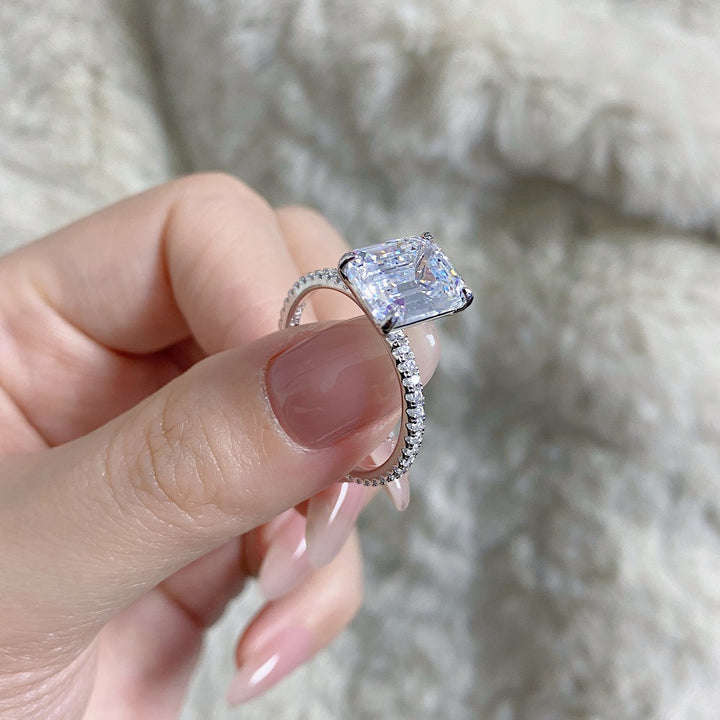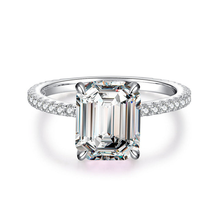 925 sterling silver high carbon diamond ring, women's light luxury zircon color treasure rock candy 4-carat diamond ring