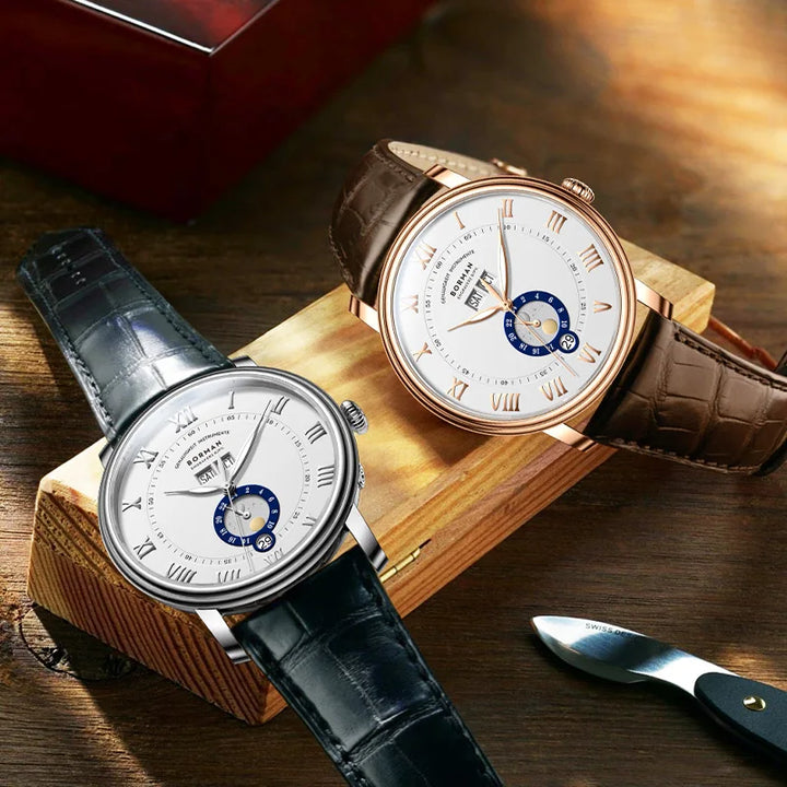 Gunmetal, white leather, brown leather, white, Rose Gold White, black and brown, black, black leather |