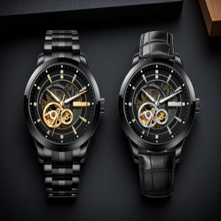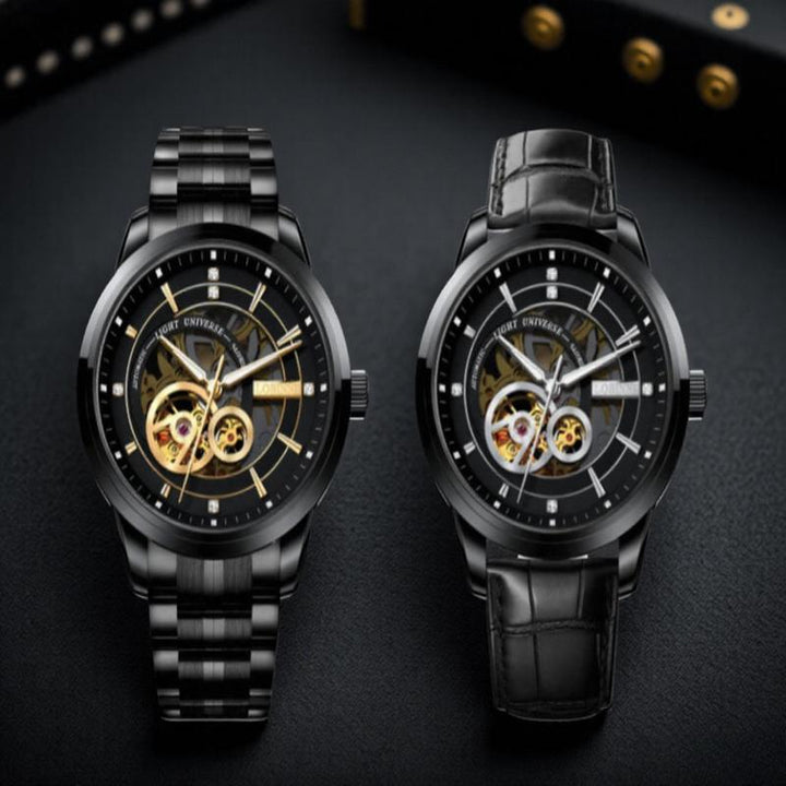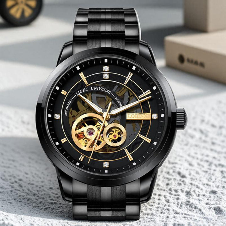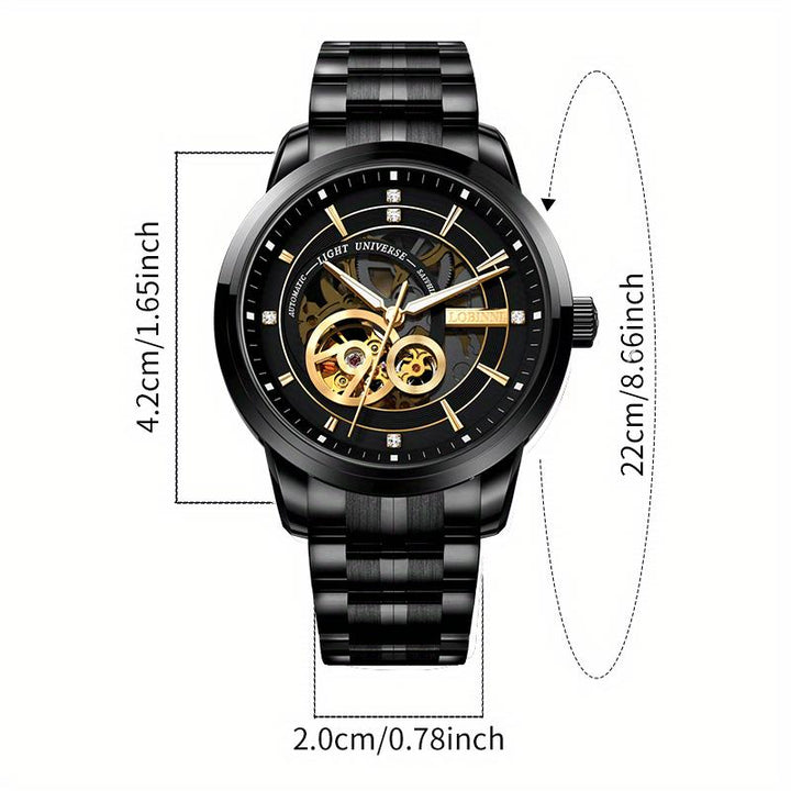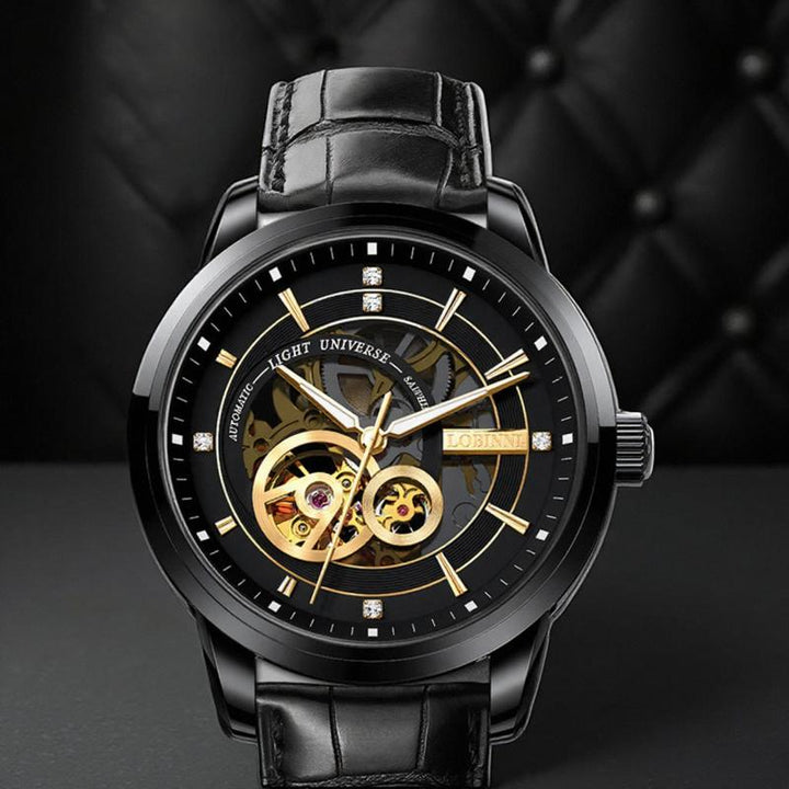 LOBINI men's Watch fashion luxury watch hollow movement mechanical watch, fully automatic waterproof leather belt men's steel belt watch trend, suitable for gift-giving