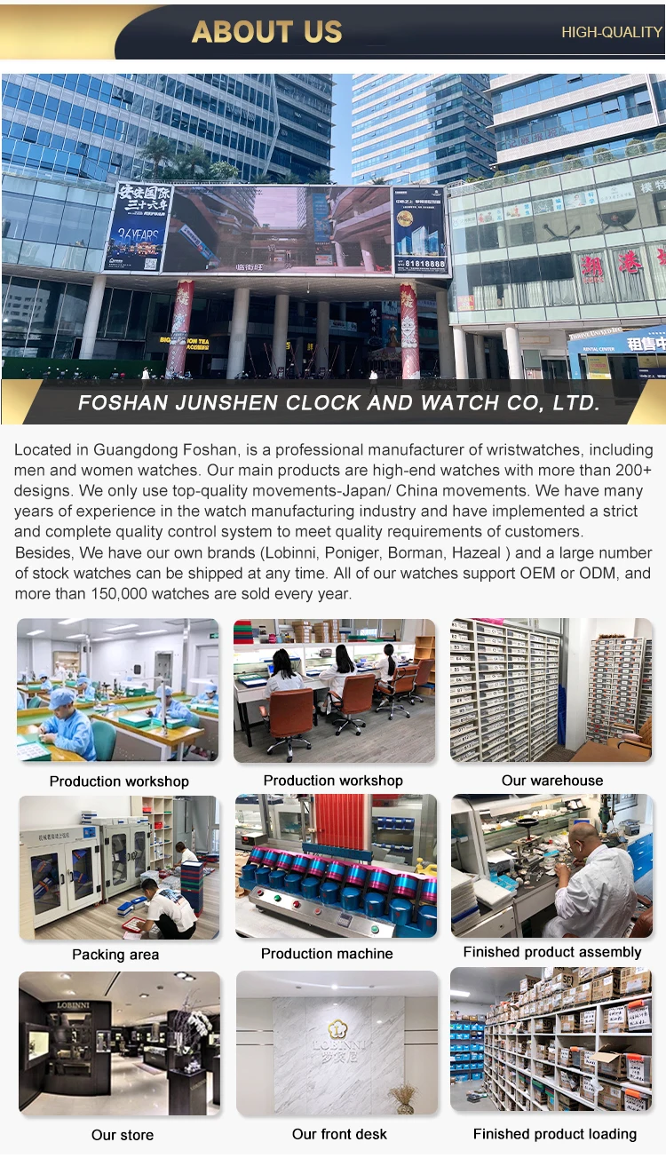 A: Our LOBINNI brand watches were established in 1963 with advanced high-tech production facilities and focus on producing high quality watches.