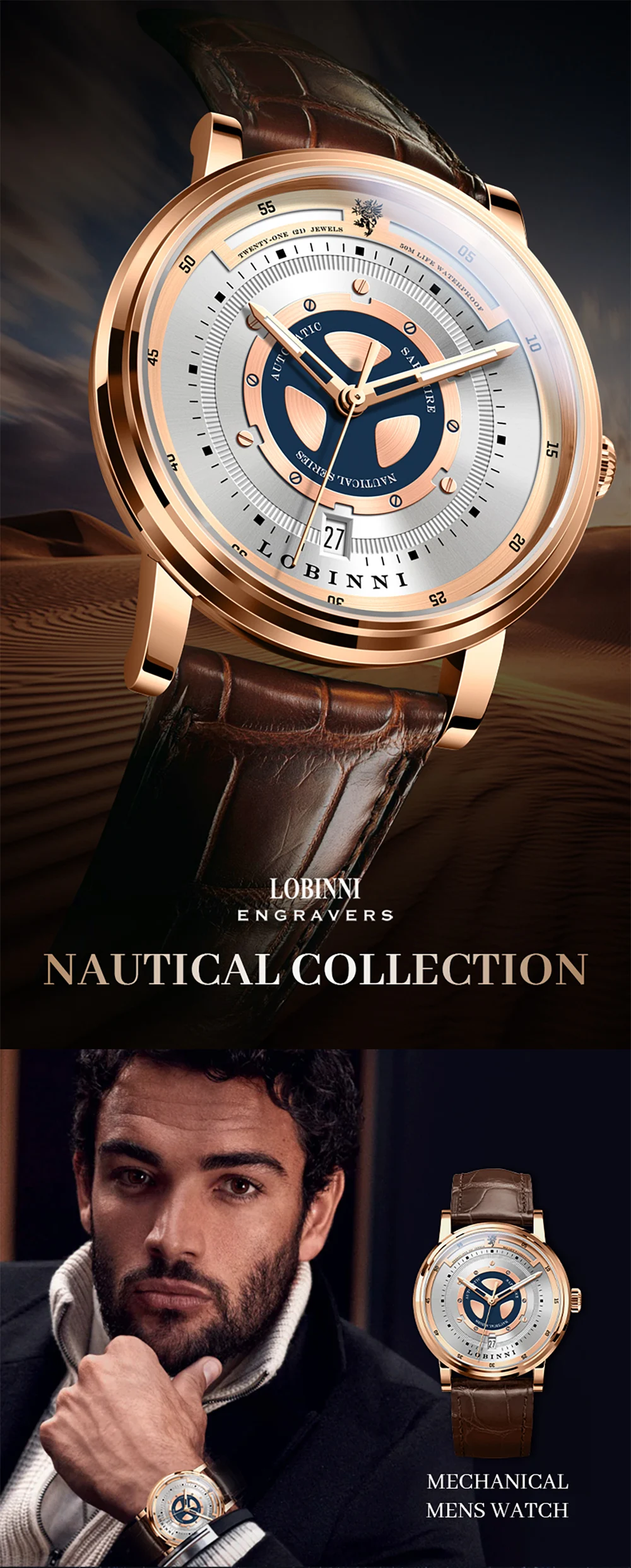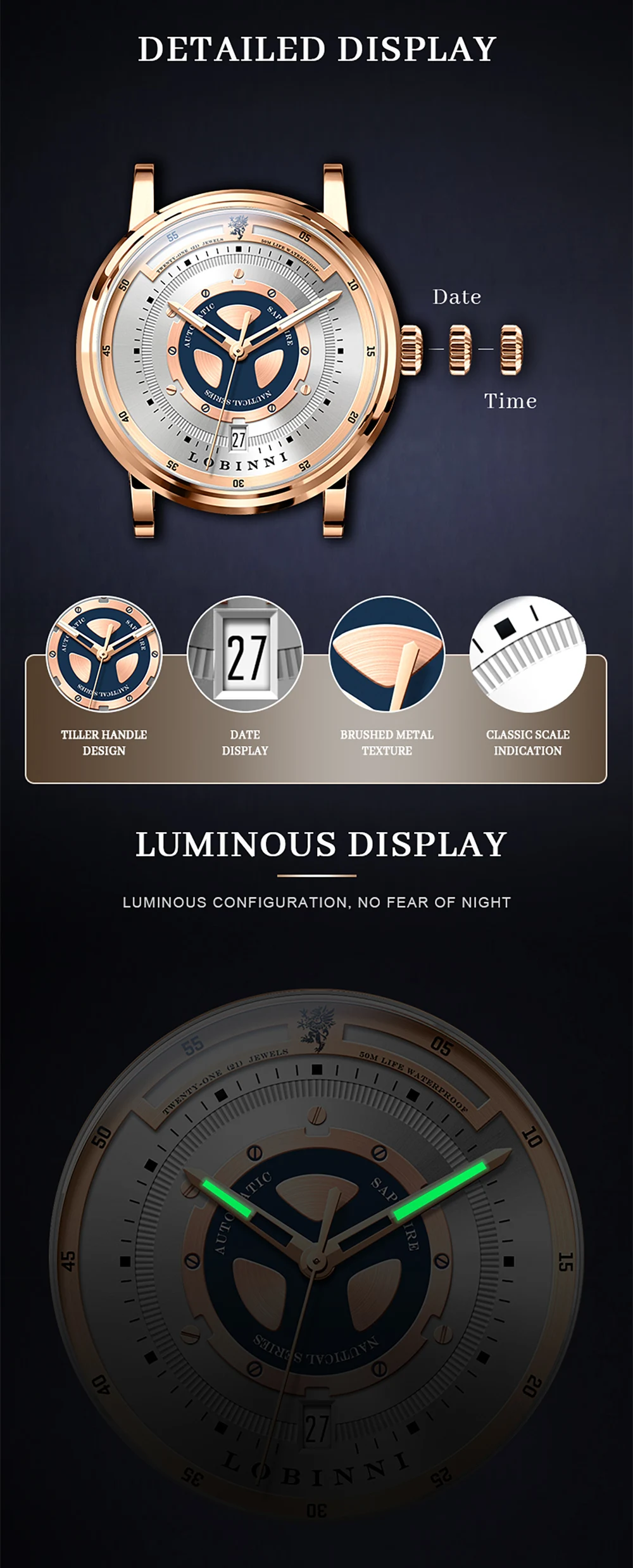 Lobinni Men Luxury Watch 40MM Fashion Automatic Mechanical Wristwatch 50M Waterproof Luminous Sapphire NH35