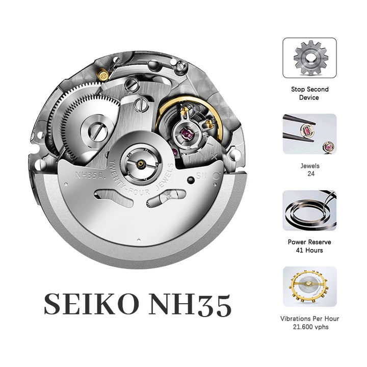 Movement:Japan Seiko NH35 Automatic Mechanical Movement