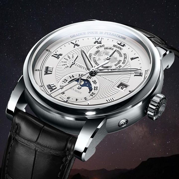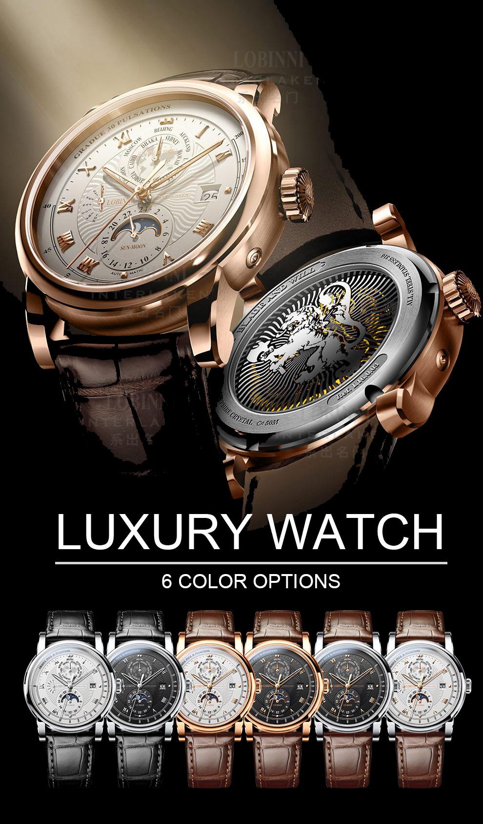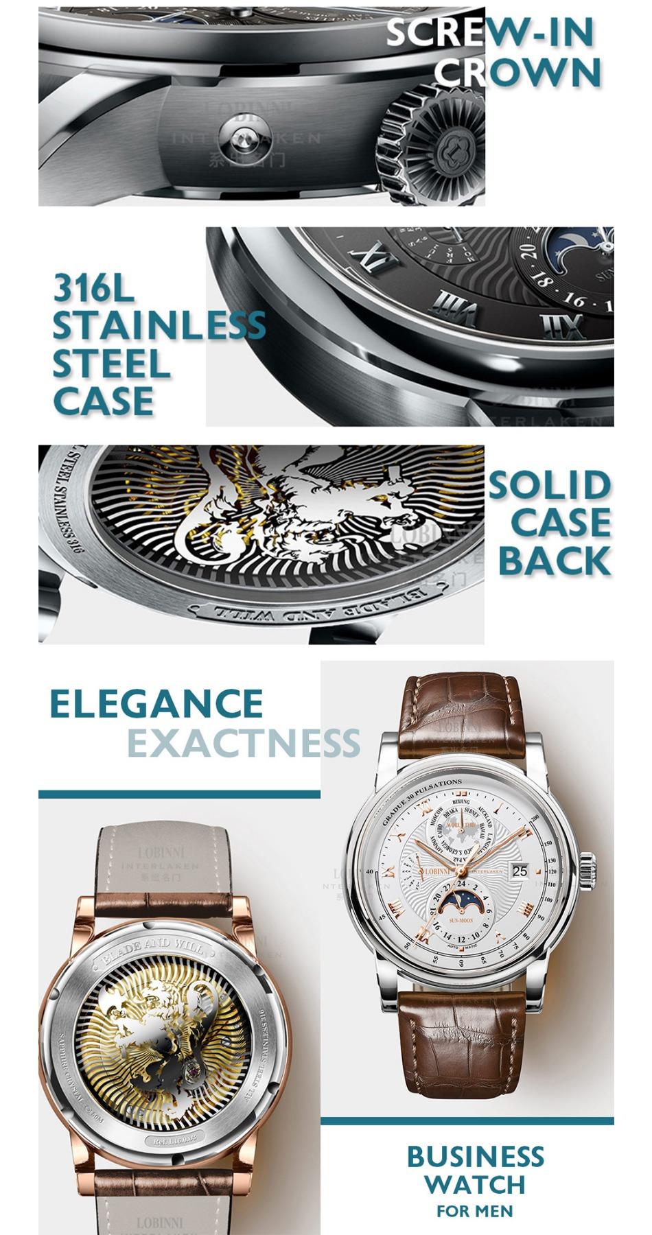 LOBINNI Men's Automatic Mechanical Watch, Waterproof Business Multi-Functional Watch, Valentine's Day Gift For Men 16003