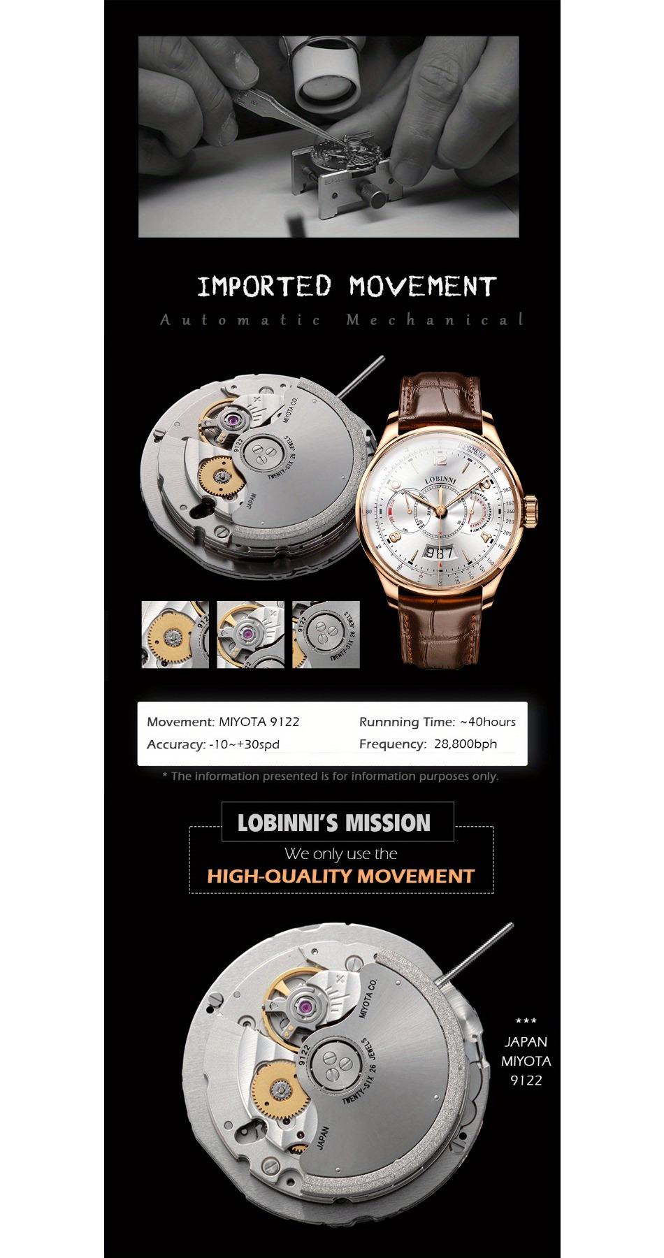 LOBINNI Men's Automatic Mechanical Watch With PU Leather Strap, Large Dial, Fashion Waterproof Multifunctional Men's Watch, Ideal Choice For Gift