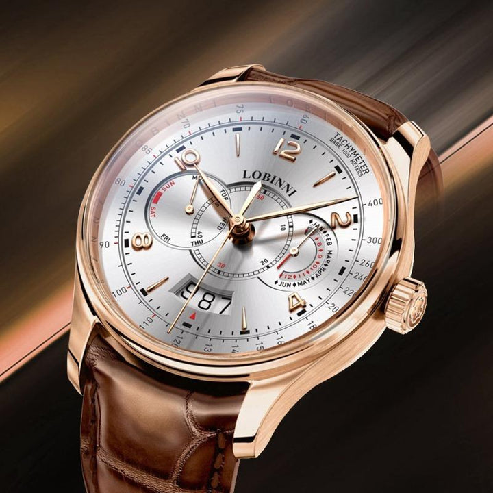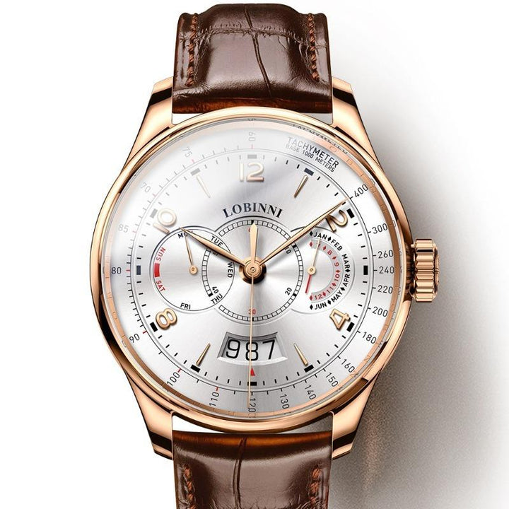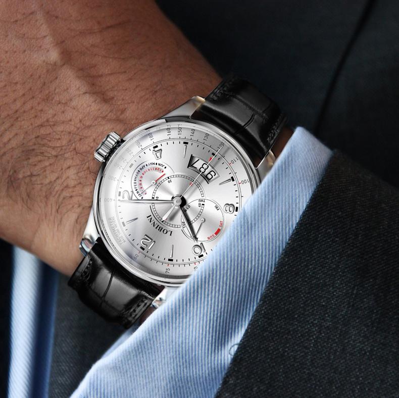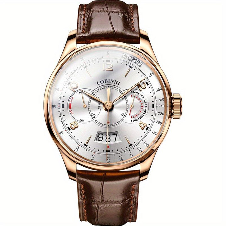 LOBINNI Men's Automatic Mechanical Watch With PU Leather Strap, Large Dial, Fashion Waterproof Multifunctional Men's Watch, Ideal Choice For Gift