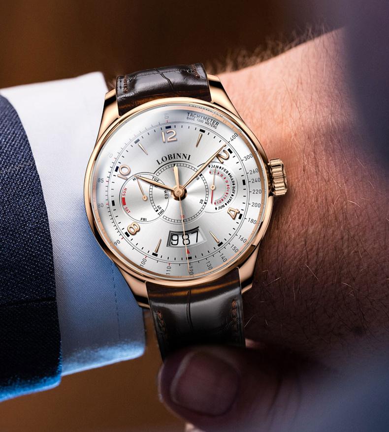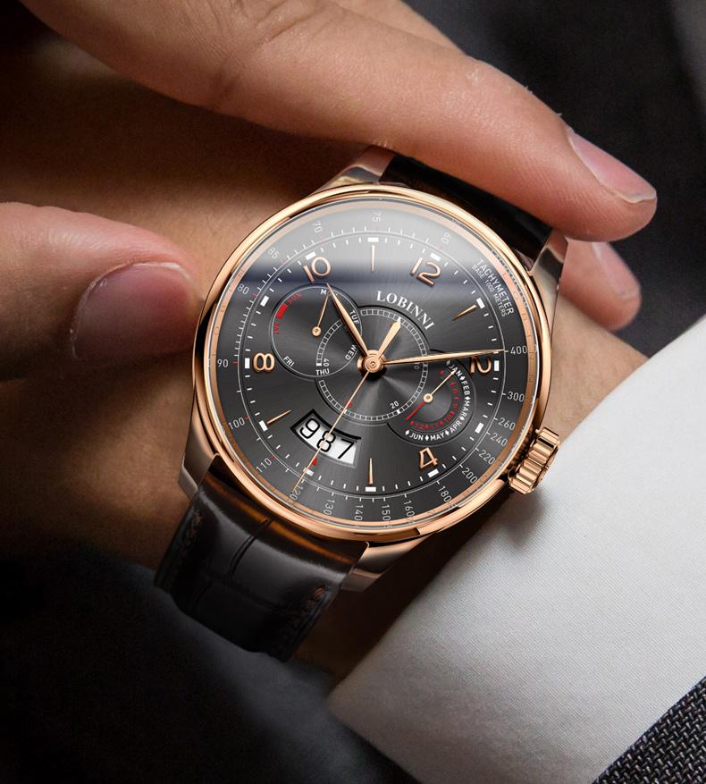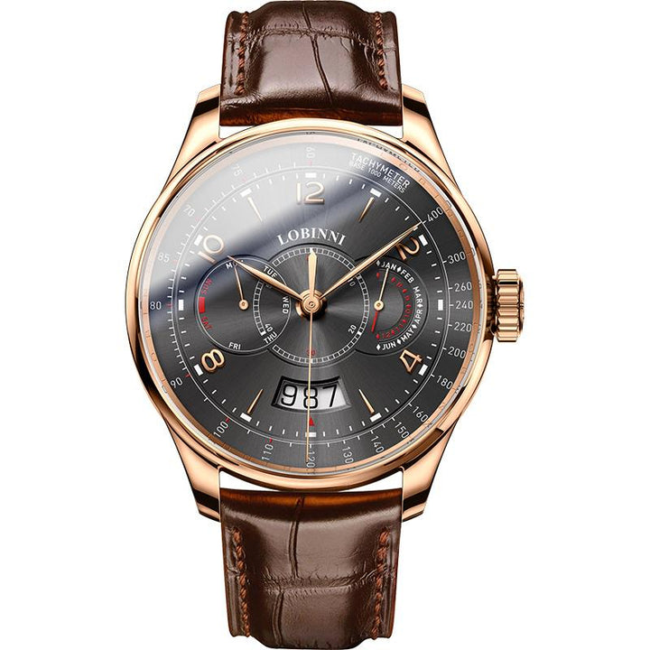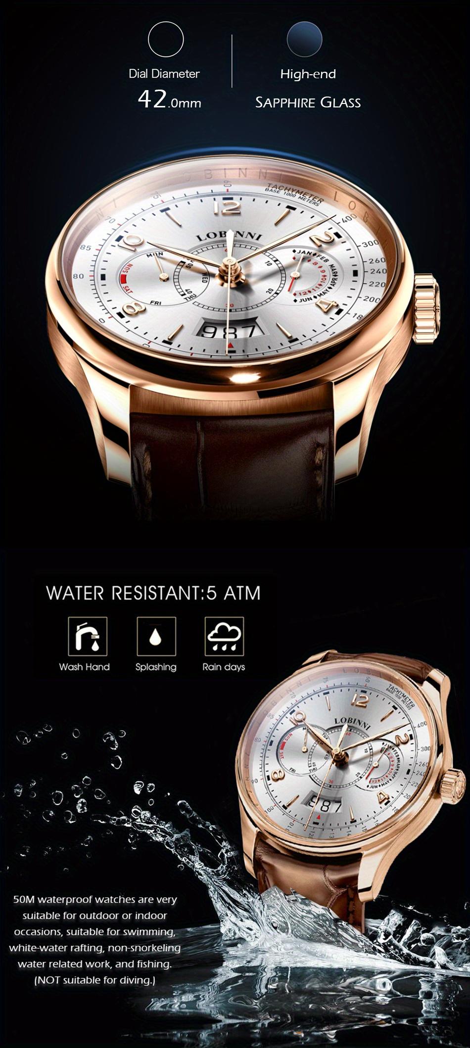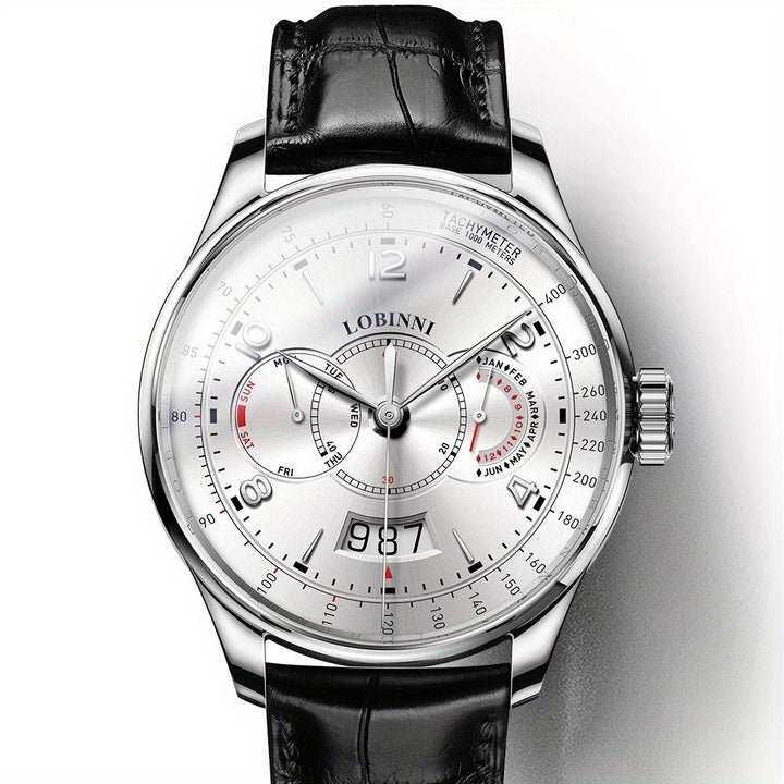 LOBINNI Men's Automatic Mechanical Watch With PU Leather Strap, Large Dial, Fashion Waterproof Multifunctional Men's Watch, Ideal Choice For Gift