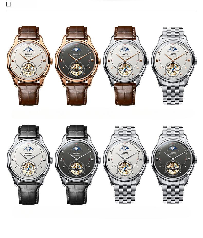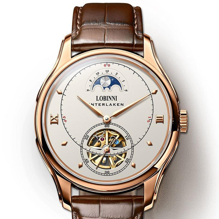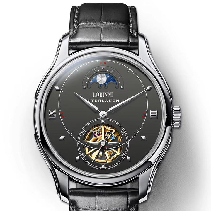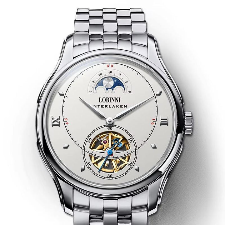 LOBINNI Men's Automatic Mechanical Watch With Steel Belt Business Hollow Watch