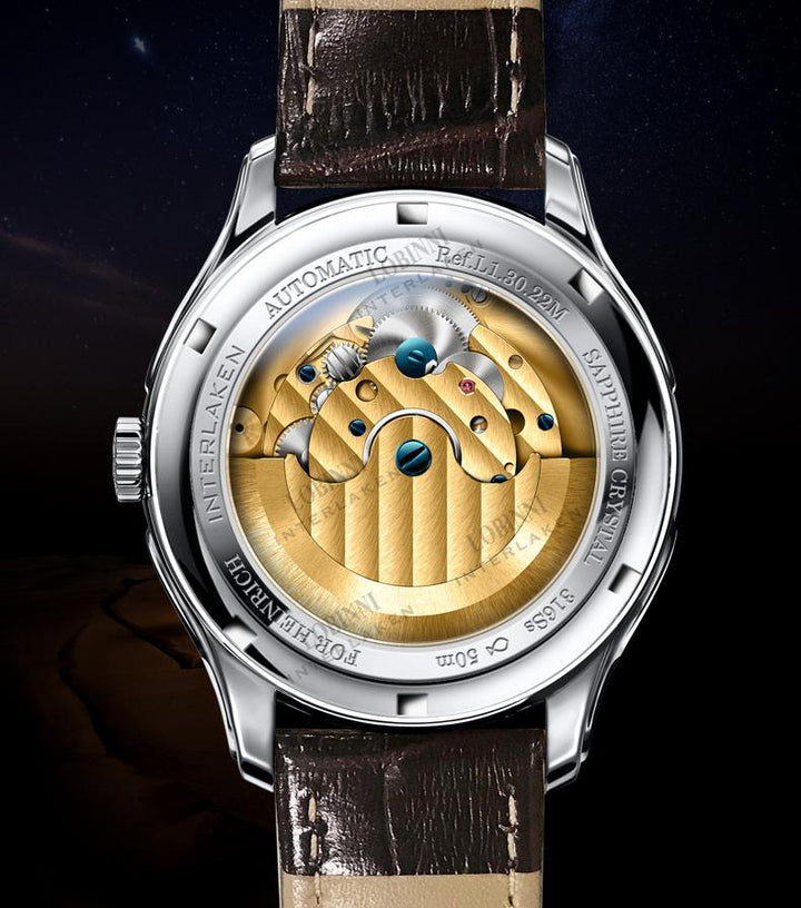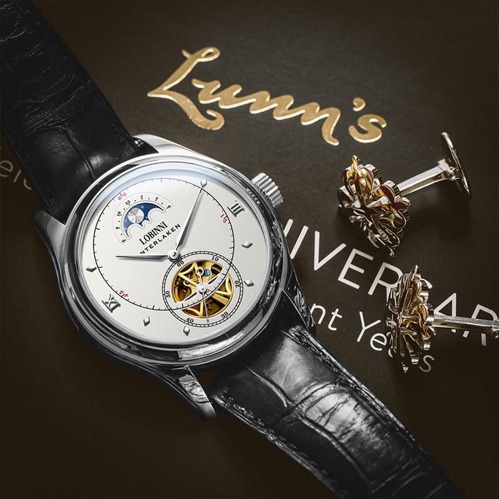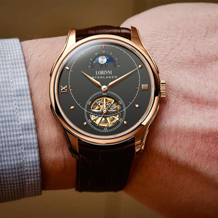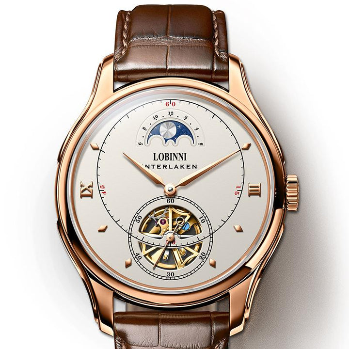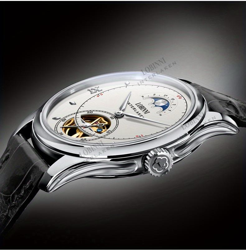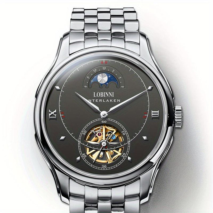 LOBINNI Men's Automatic Mechanical Watch With Steel Belt Business Hollow Watch 13023