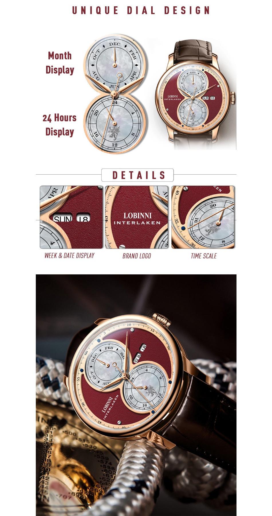 LOBINNI Men's Mechanical Watch, Fully Automatic Waterproof Fashionable Versatile Watch