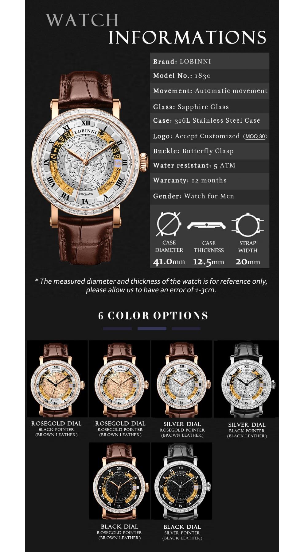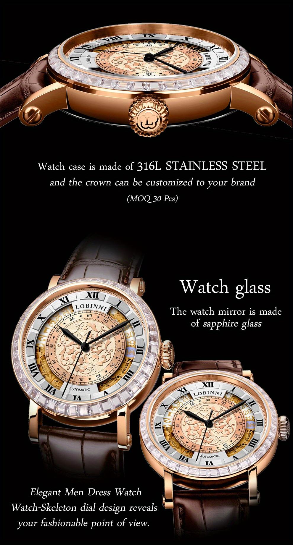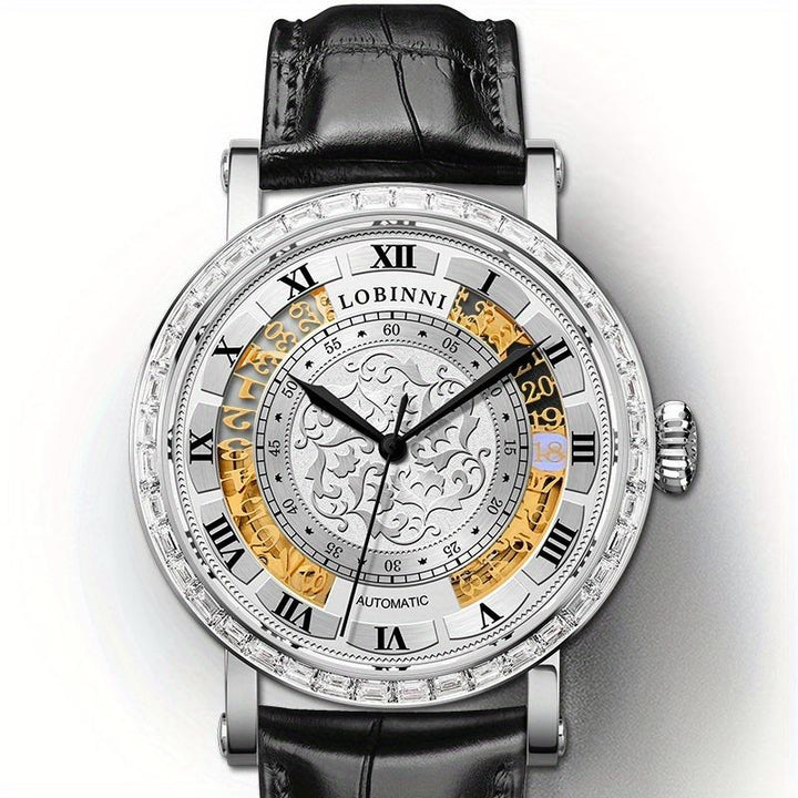 LOBINNI Men's Watch Double-sided Hollow Rhinestone Automatic Mechanical Watch Waterproof Watch