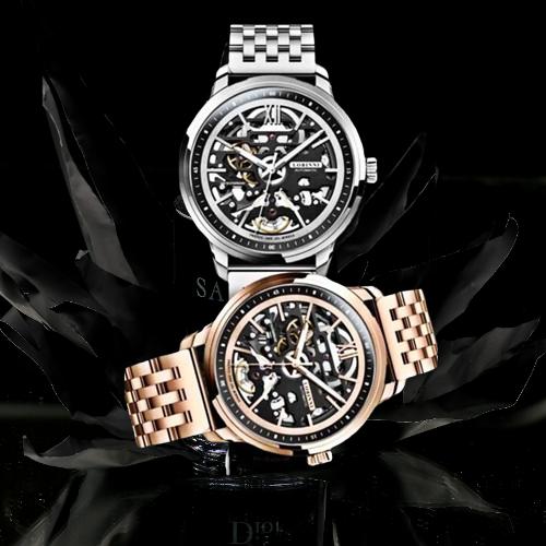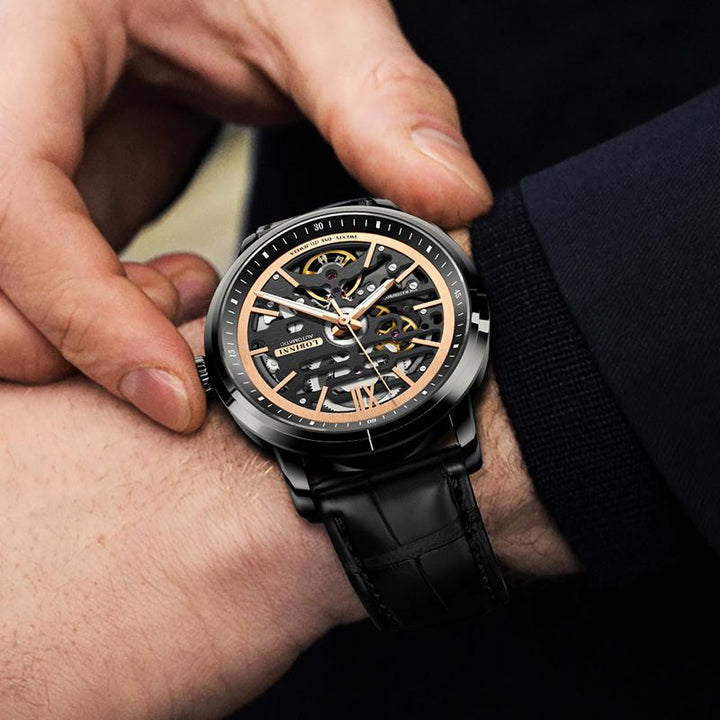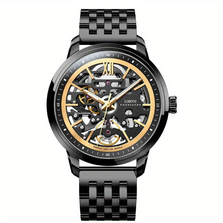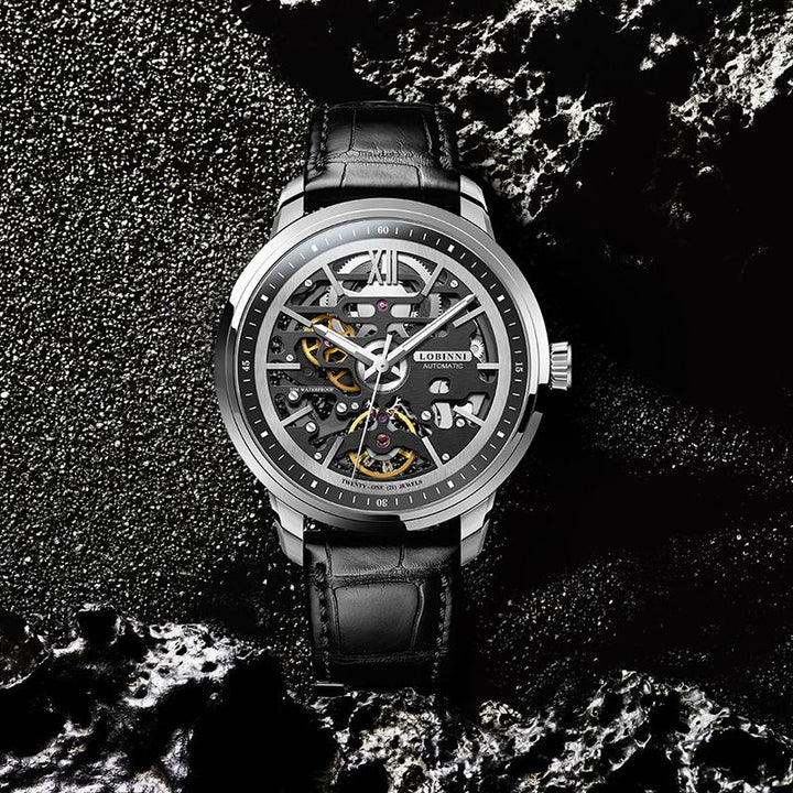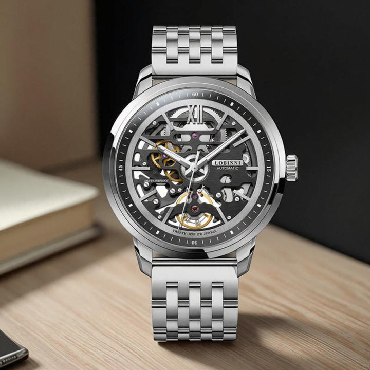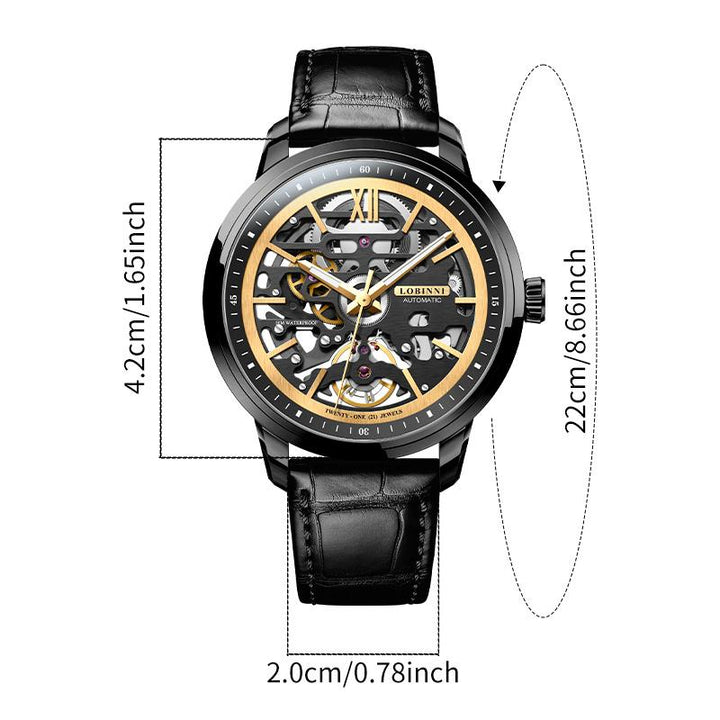 LOBINNI New Business Leather Luxury Luminous Automatic Hollow Machinery 316 Stainless Steel Case Watch 92001