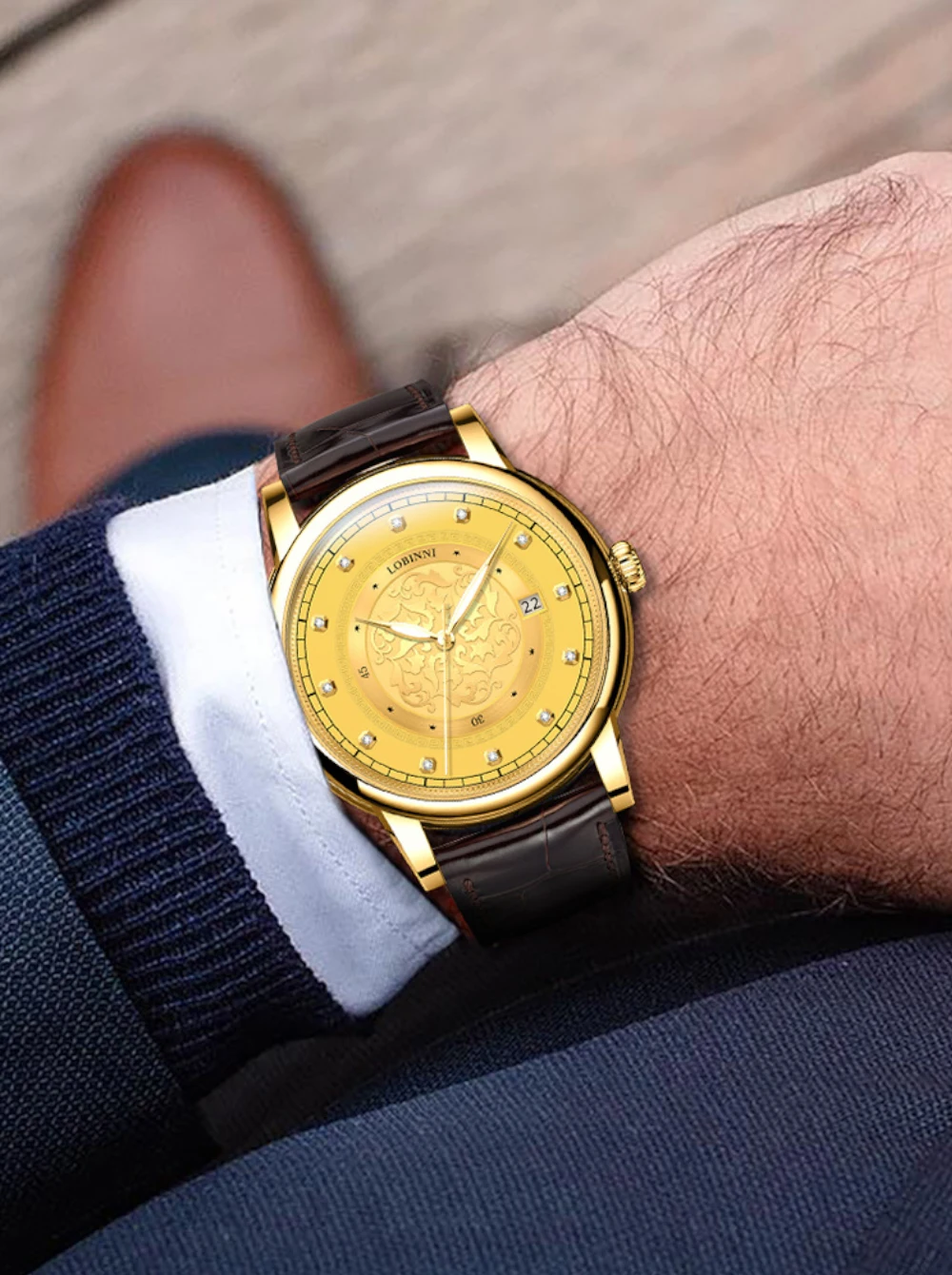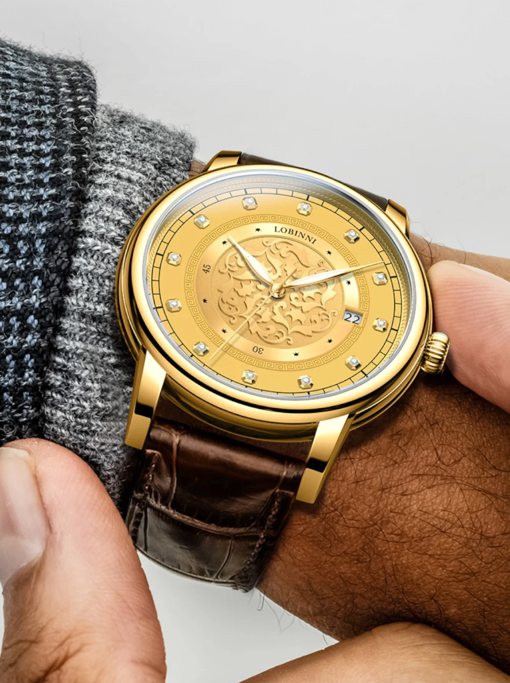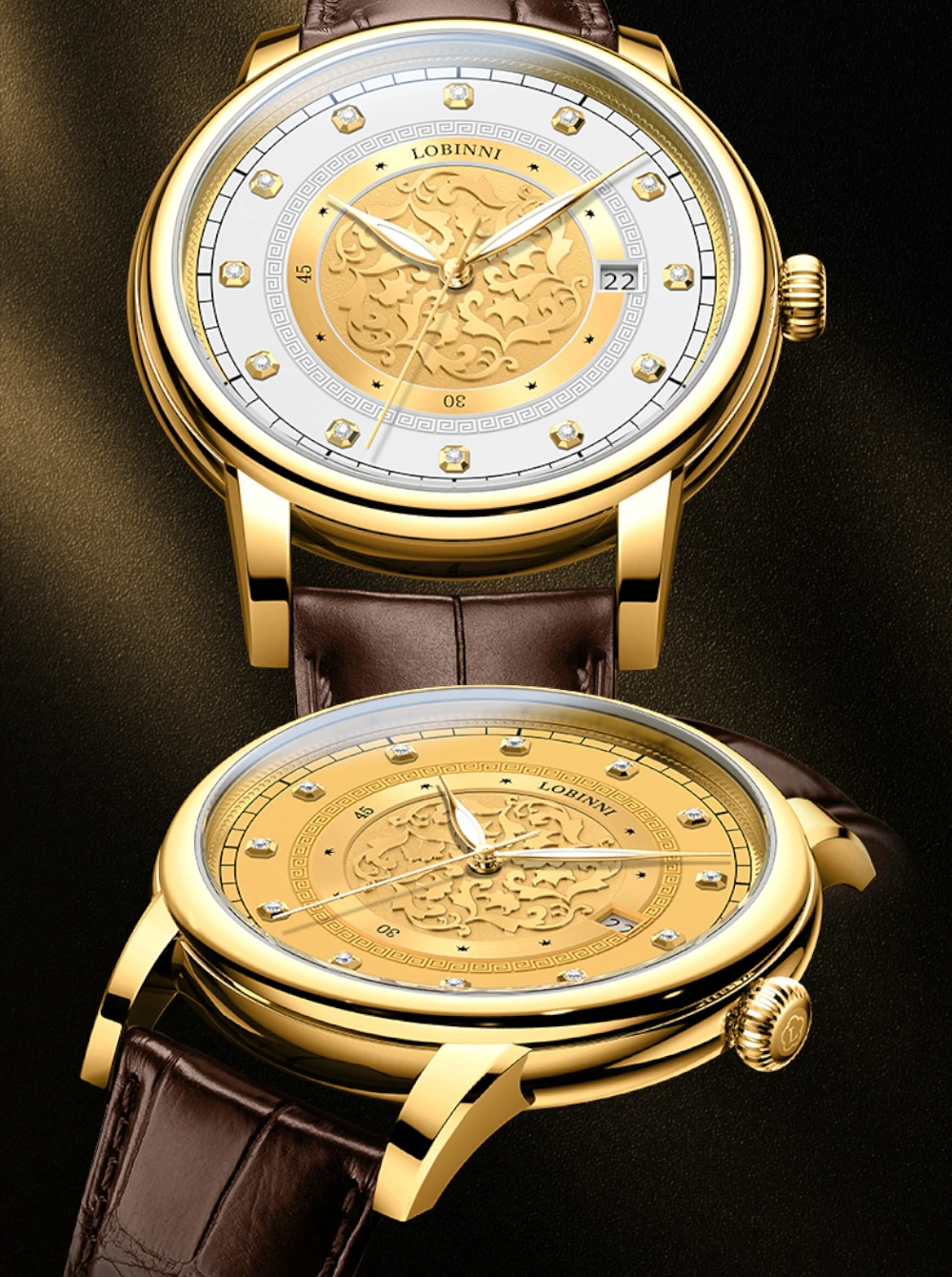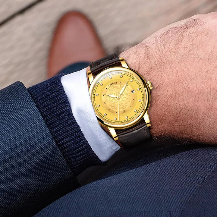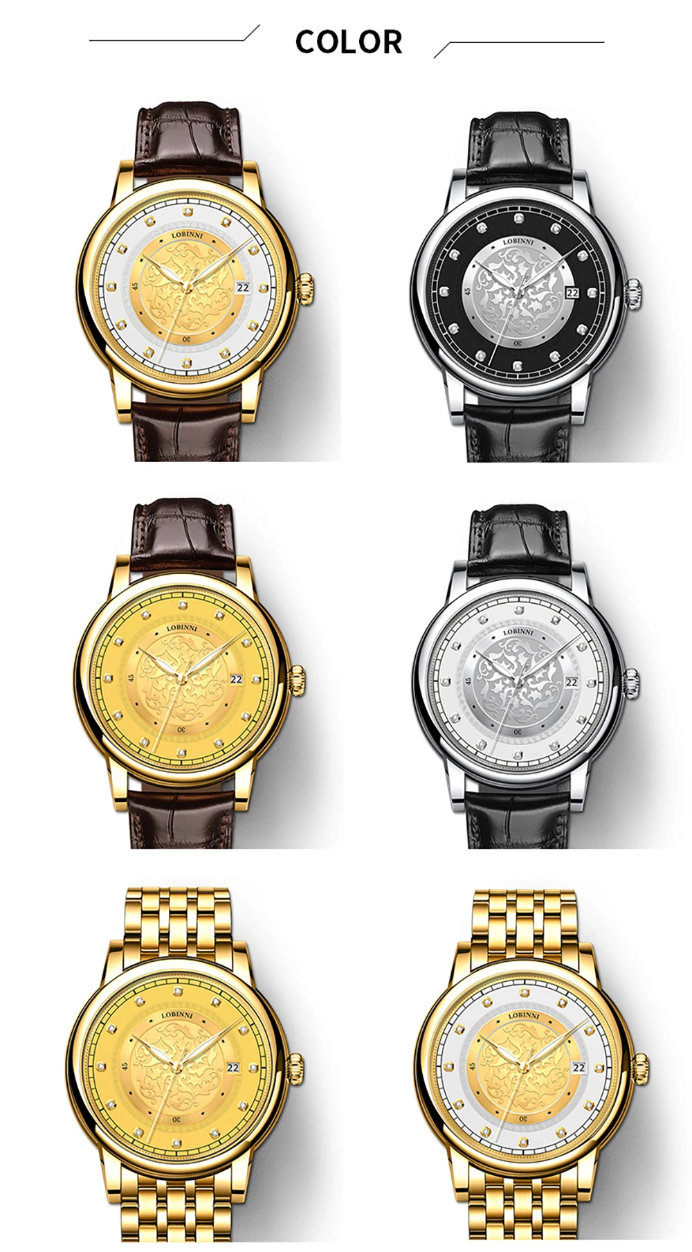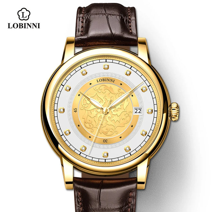 LOBINNI New Design Dial Leather Band Mens Wristwatch Luminous Hand Classic Automatic Watch 2025