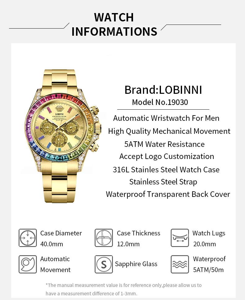 A: Our LOBINNI brand watches were established in 1963 with advanced high-tech production facilities and focus on producing high quality watches.