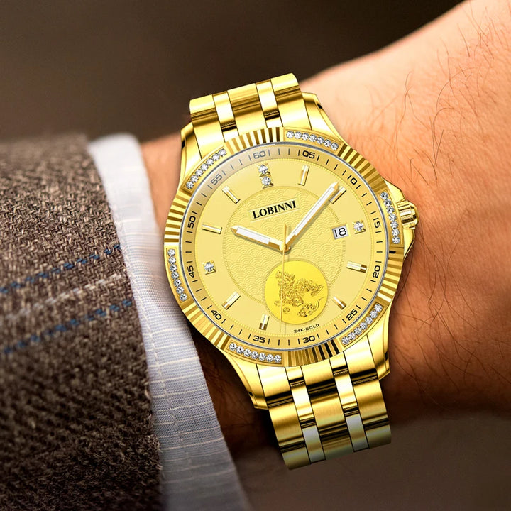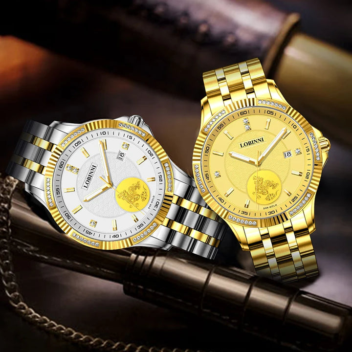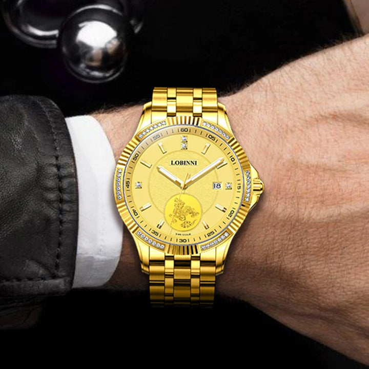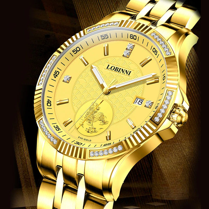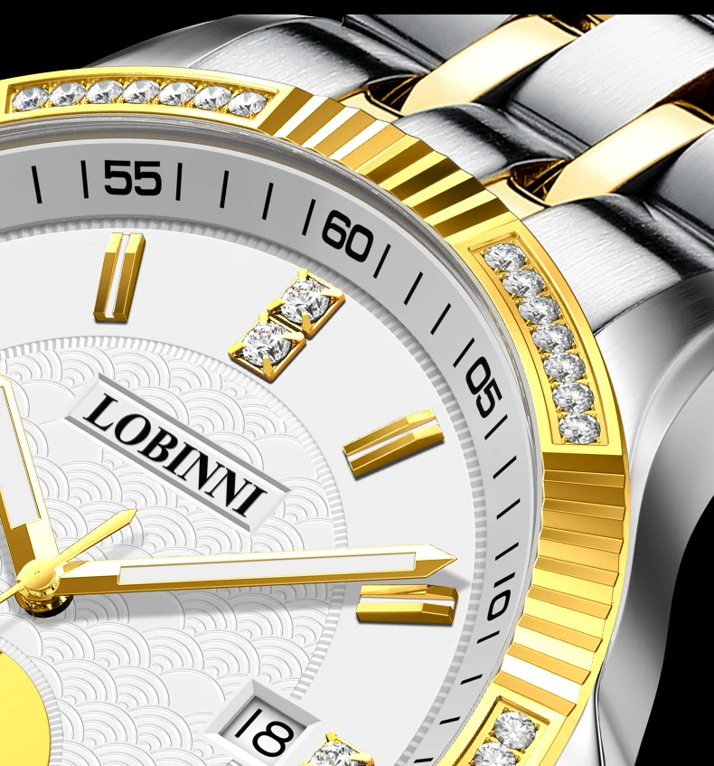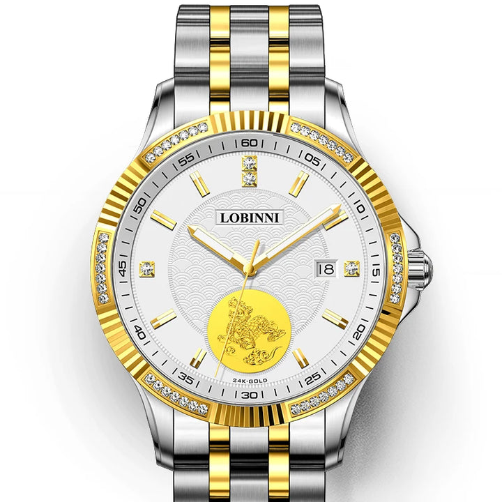 LOBINNI Stainless Steel Band Waterproof Automatic Mechanical Wrist Watch for Men 2024