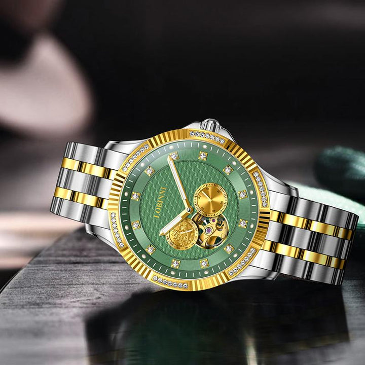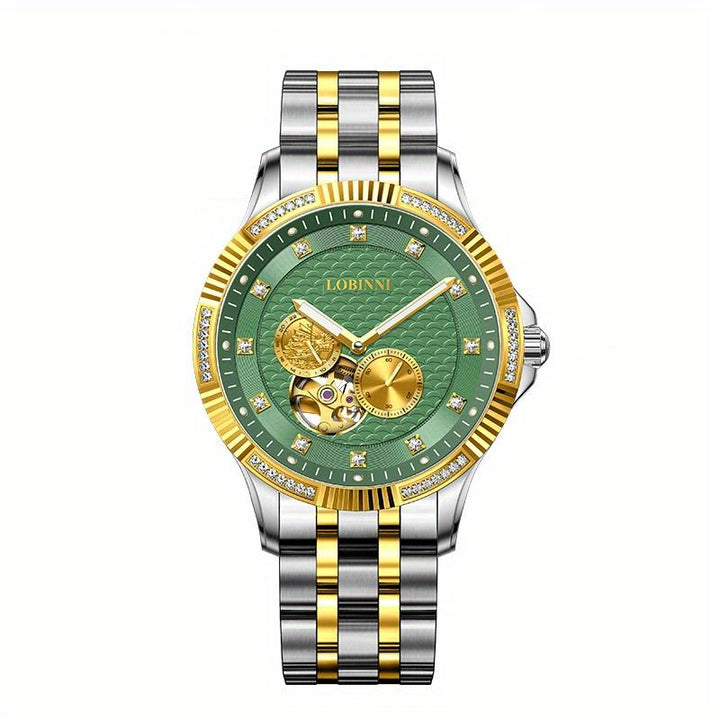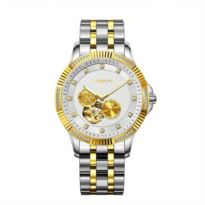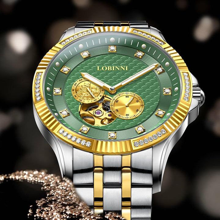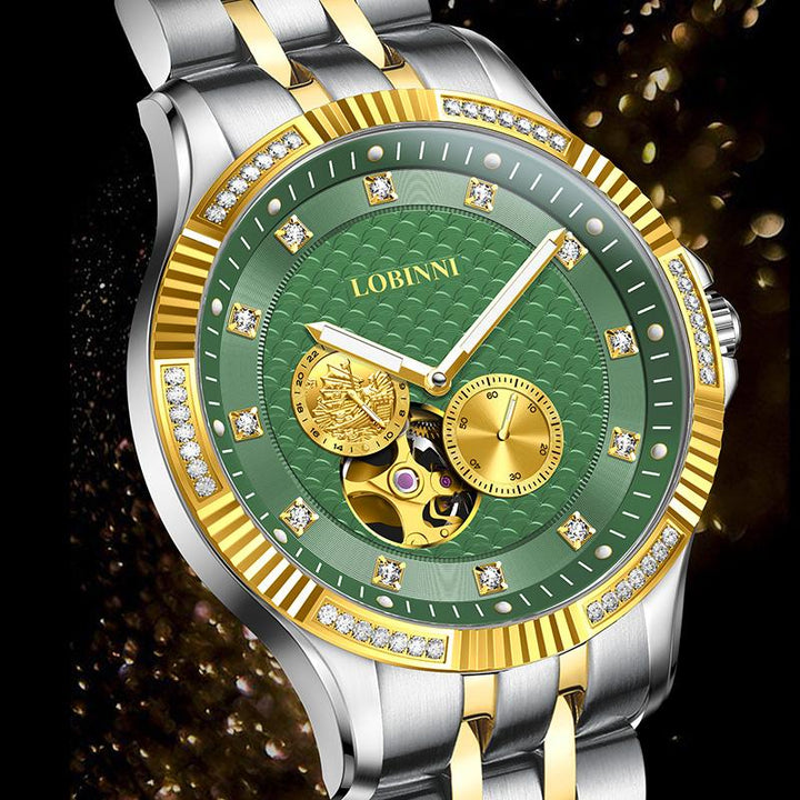 Lobinni Watch Men's Genuine Mechanical Watch Fully Automatic Stainless Steel Hollow Waterproof Transparent Diamond Brand Men's Watch 19006