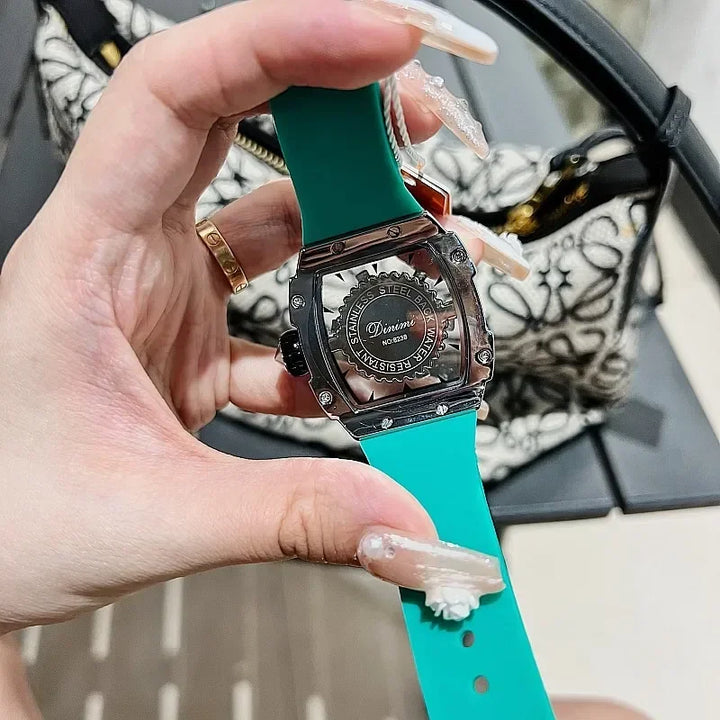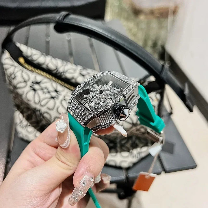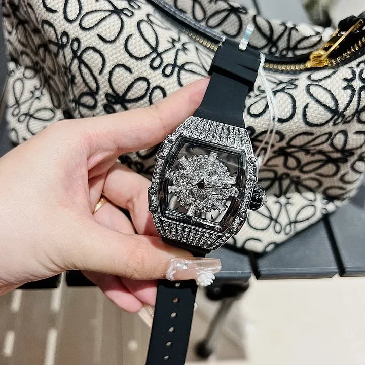 Luxury Brand Ladies Watch Snowflake Rhinestone Spinning Diamond Face for Women Silicone Strap Sports Quartz Richard Watch