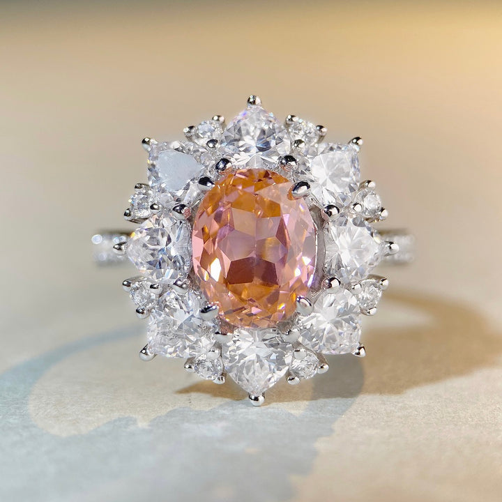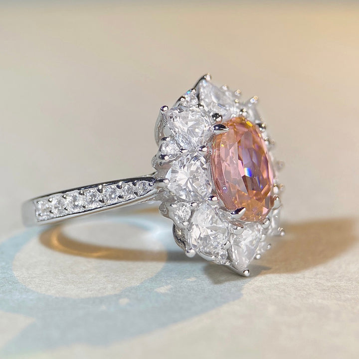 Papalacha powder S925 pure silver ring for women, light pink, simple and cool color series, high drag luxury set with full diamond ring