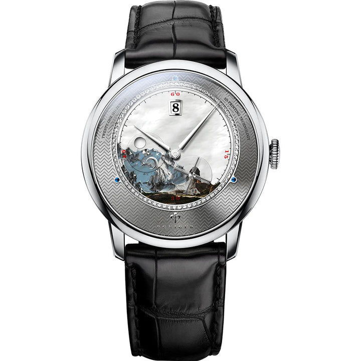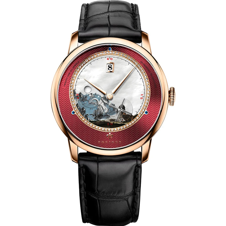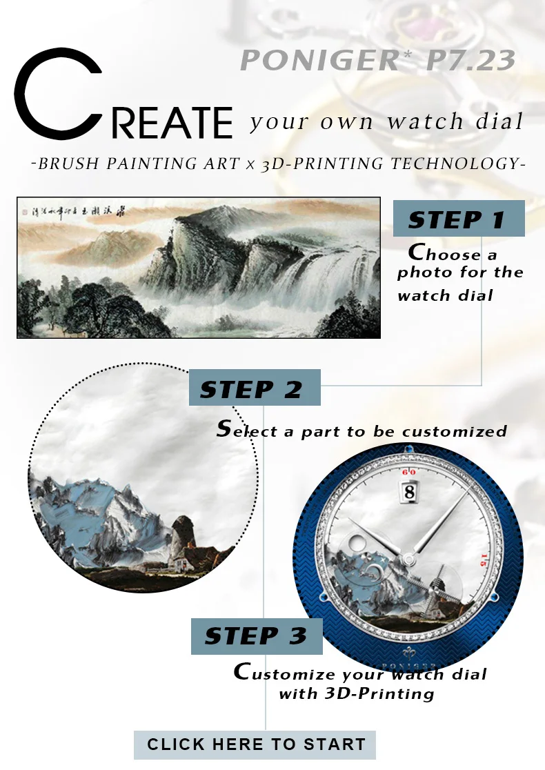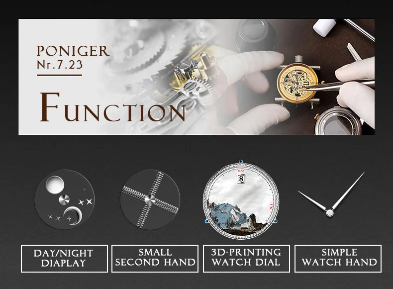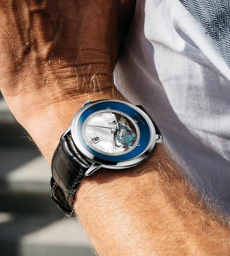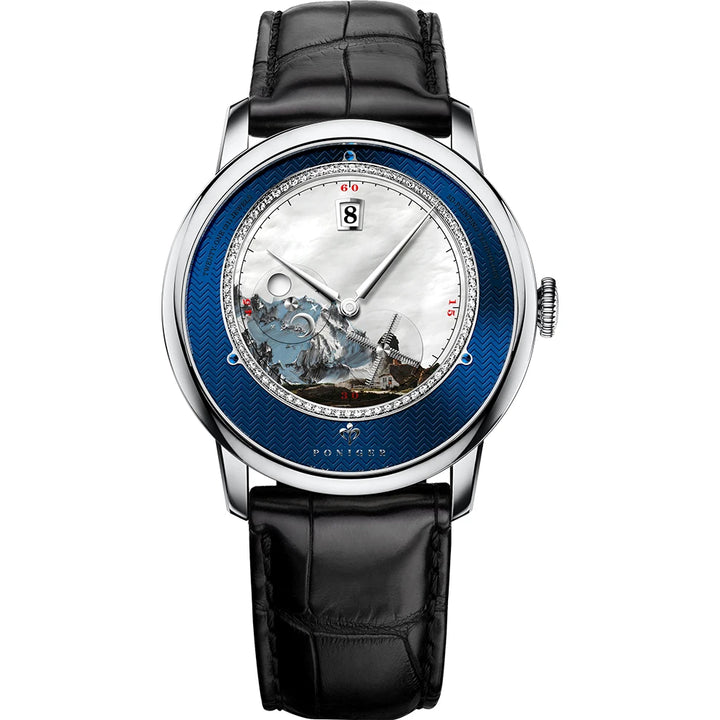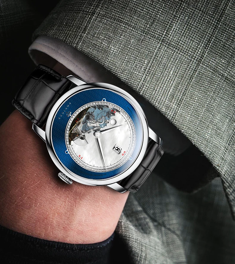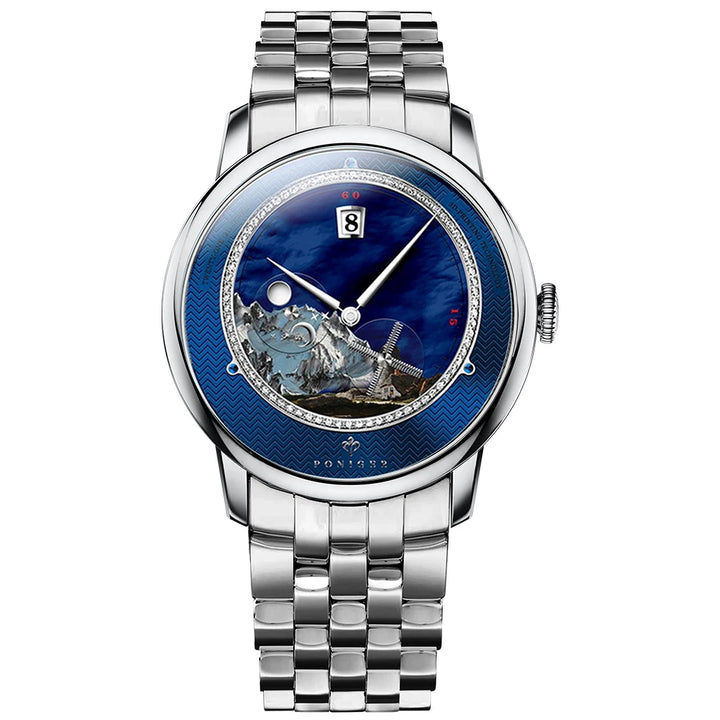 PONIGER代加工手表机械自有品牌定制表盘蓝色彩色男士真皮腕表relogio男士