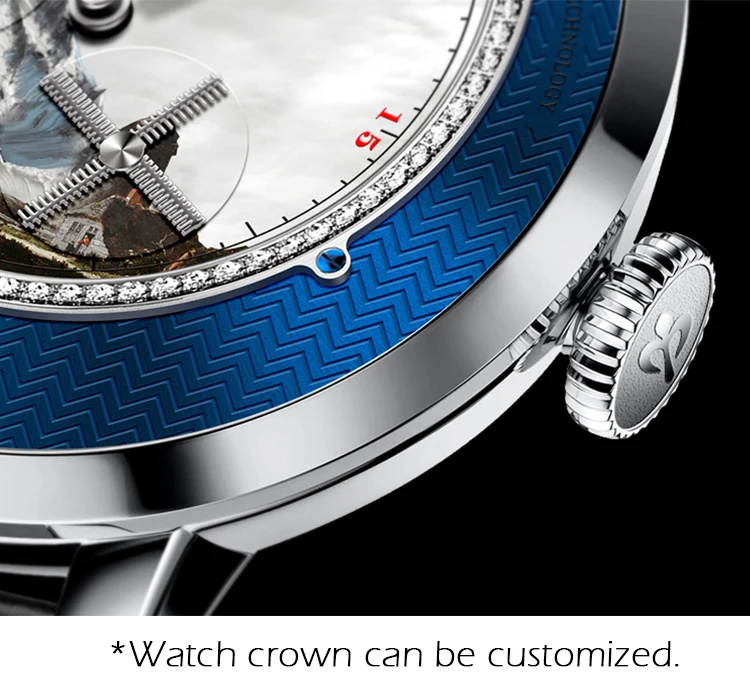 2.we can customize your logo on our watch dail, crown , cover, buckle, band.