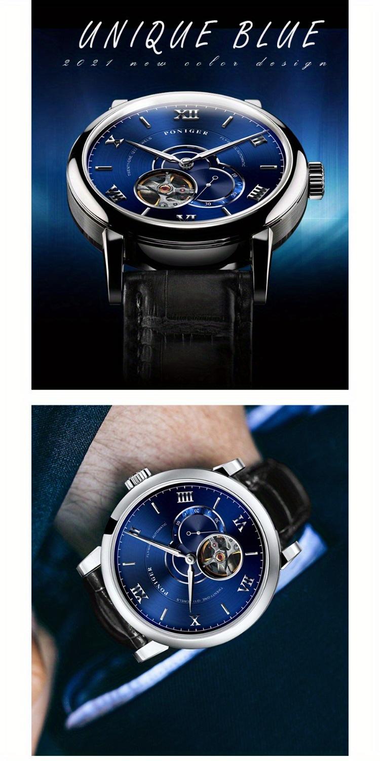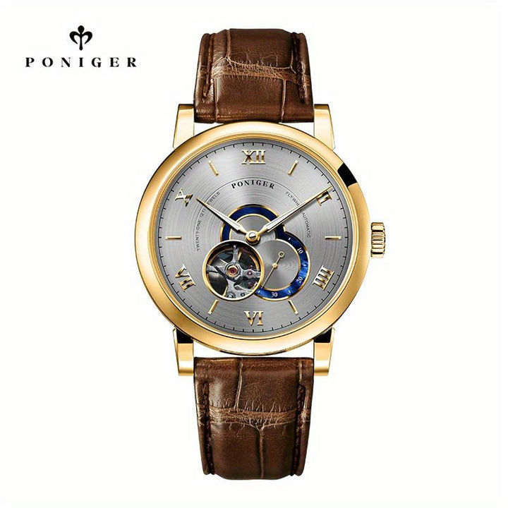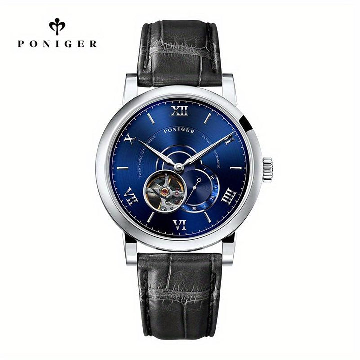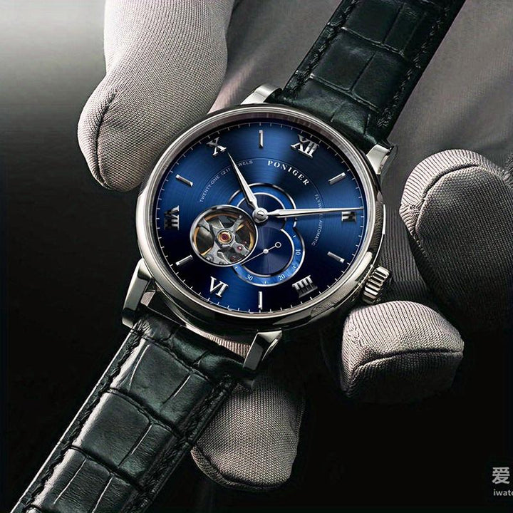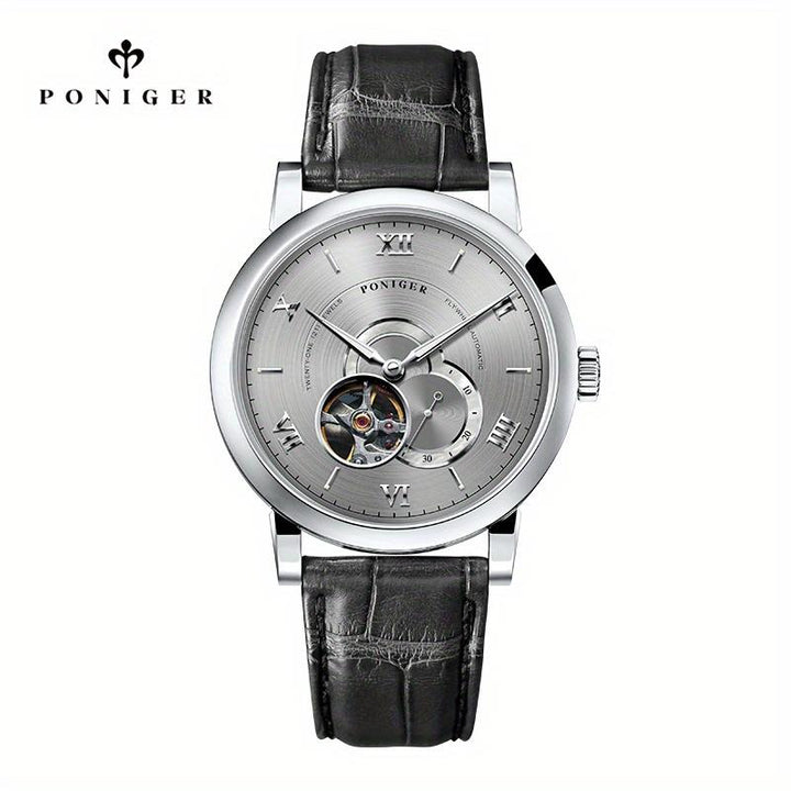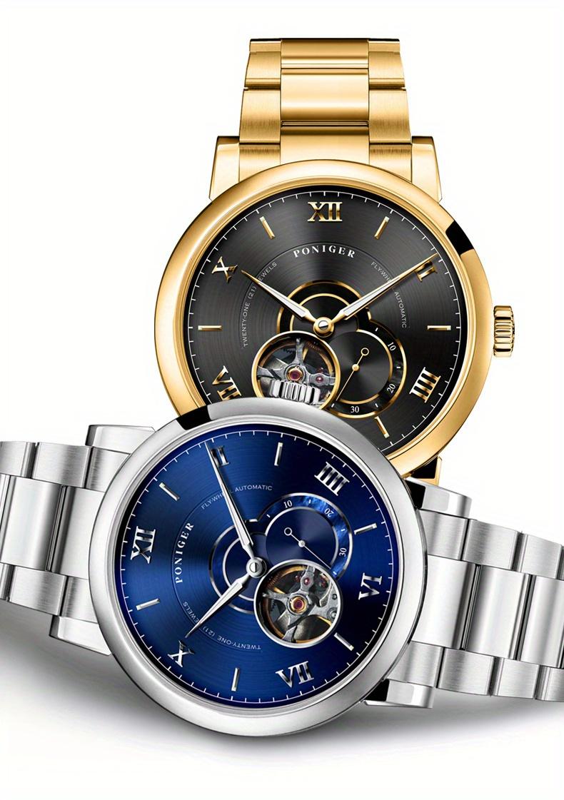 Poniger Luxury Men's Mechanical Watch Genius Steel Strap Waterproof Automatic Business Watch, Stylish Design, Suitable for Business or Casual Wear P8.63