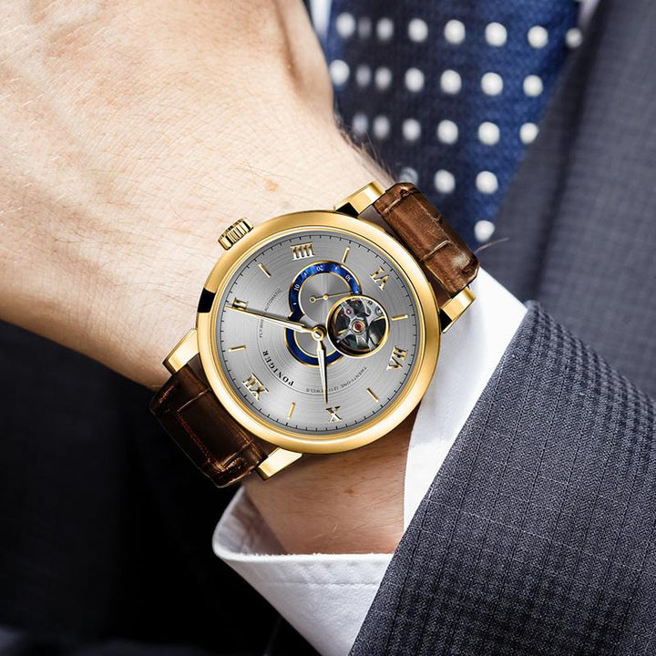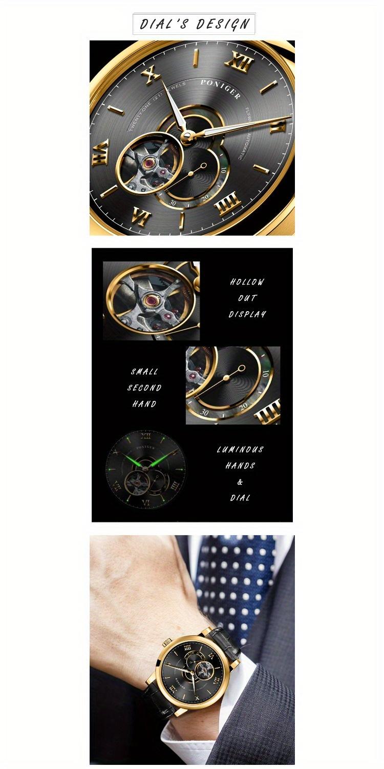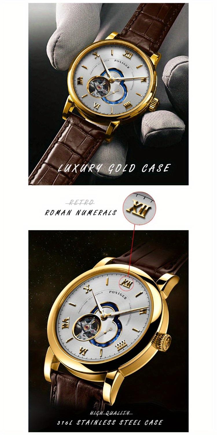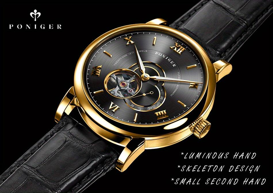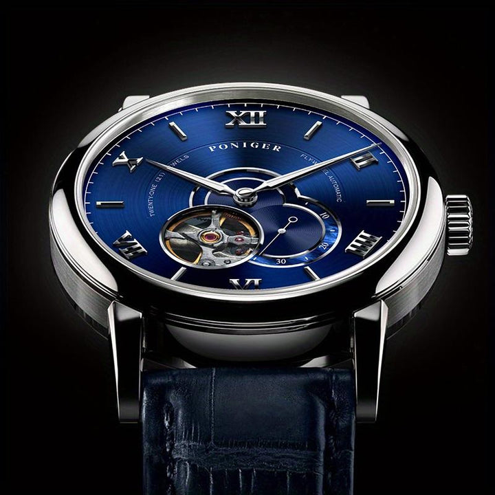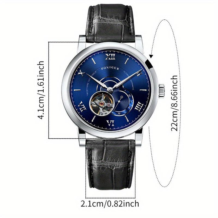 Poniger Luxury Men's Mechanical Watch Genius Steel Strap Waterproof Automatic Business Watch, Stylish Design, Suitable for Business or Casual Wear P8.63