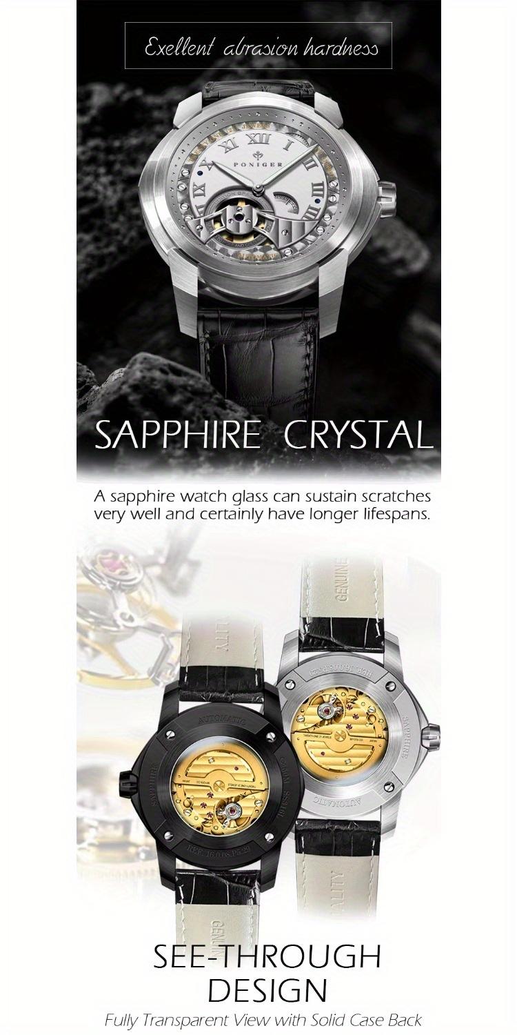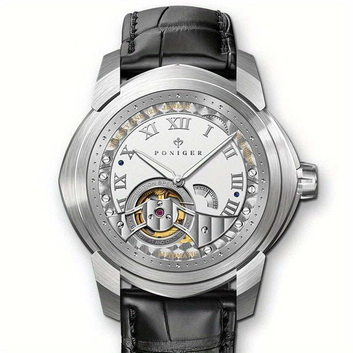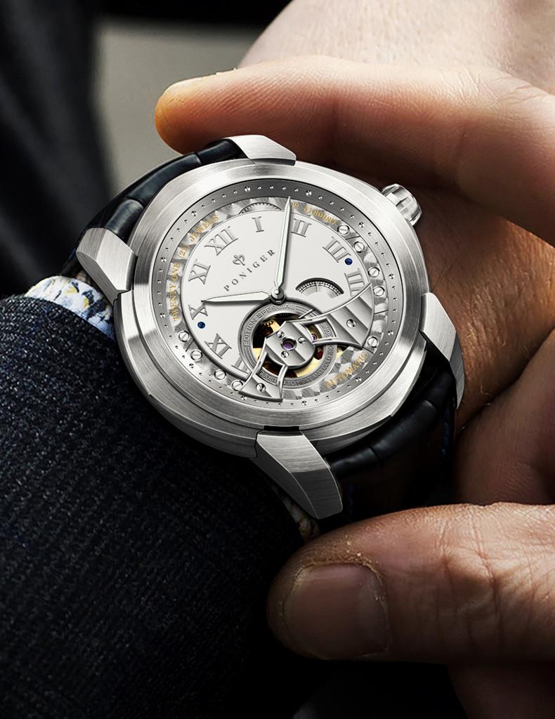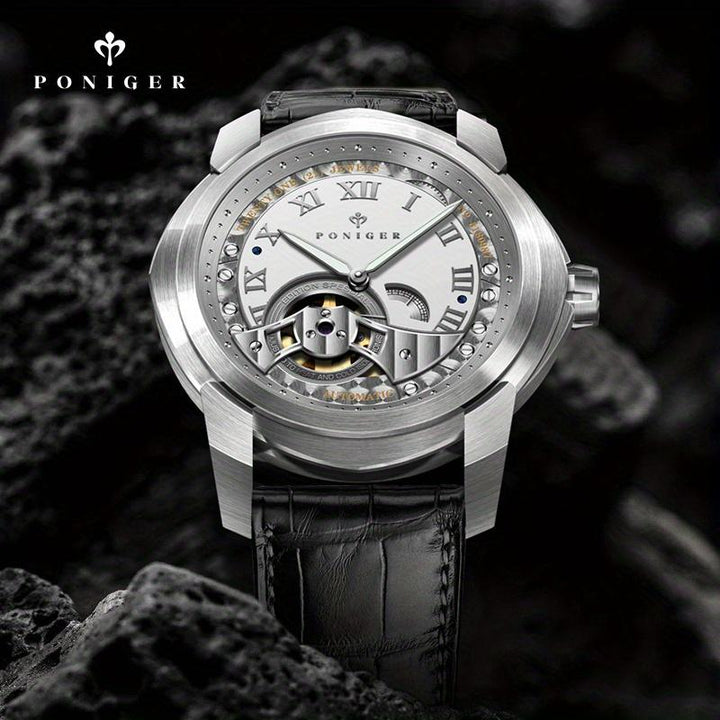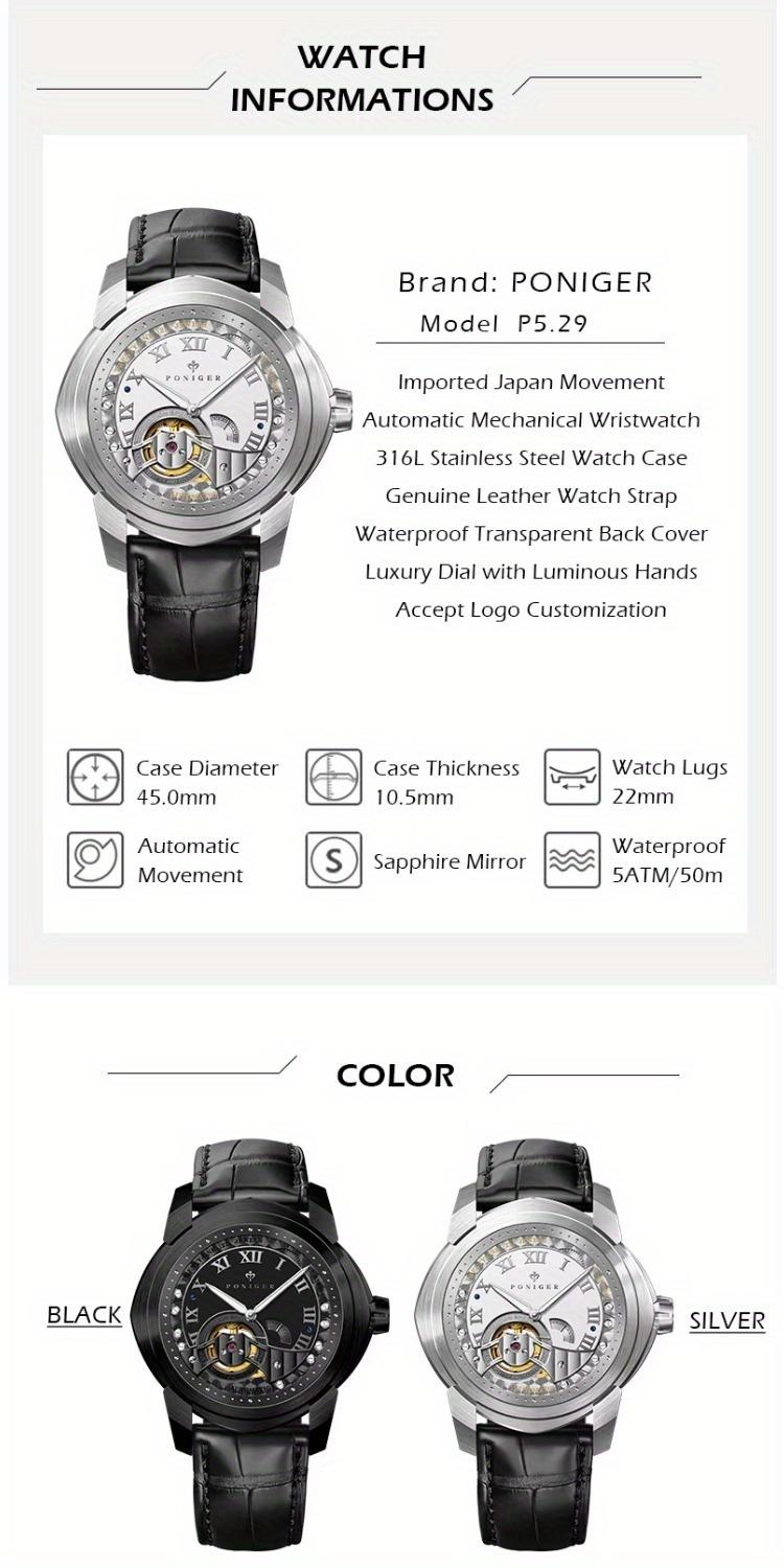 Poniger Skull Black Watch Men's Luxury Erkek Kol Saati Men's Watch Japanese Movt Automatic Mechanical Hollow Watch