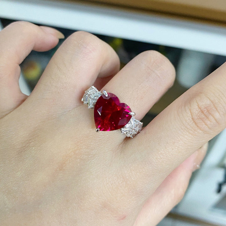 S925纯银可变色可荧光戒指女可以过钻笔爱心红刚玉戒指钻戒结婚戒