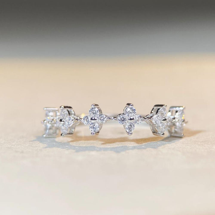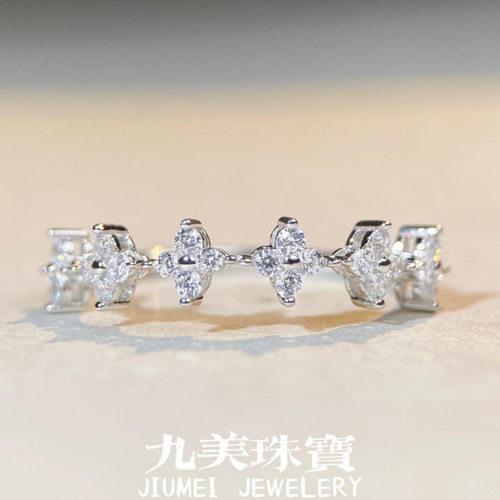 S925纯银四叶草戒指女简约高级感叠戴戒轻奢个性锆石戒子小众设计