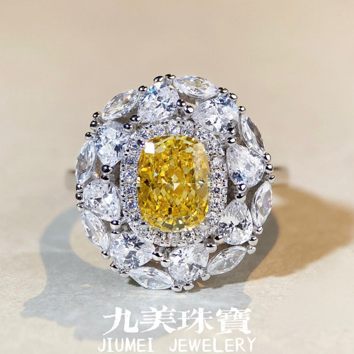 S925纯银戒指女黄钻雷迪恩切高碳钻跨境钻戒满钻欧美锆石戒子批发