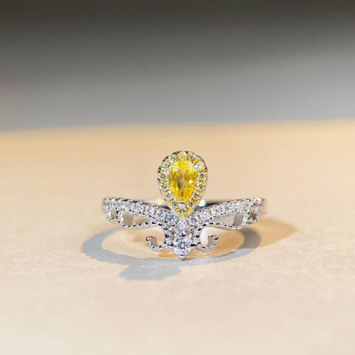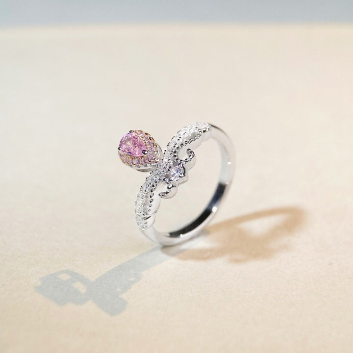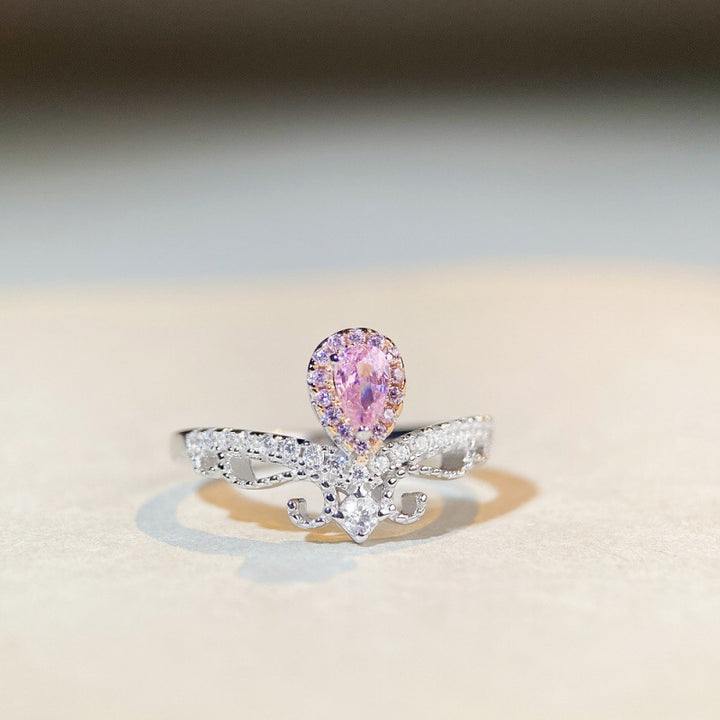 S925纯银戒指水滴高碳钻戒指轻奢粉钻钻戒ins风简约日韩梨形戒指