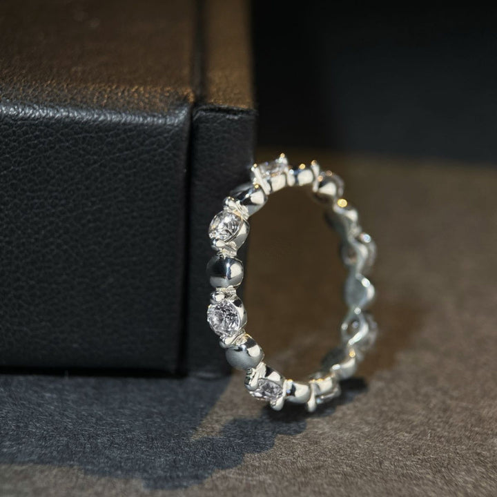 S925纯银泡泡戒指间钻气泡圆形排戒简约叠戴百搭钻戒锆石戒指批发