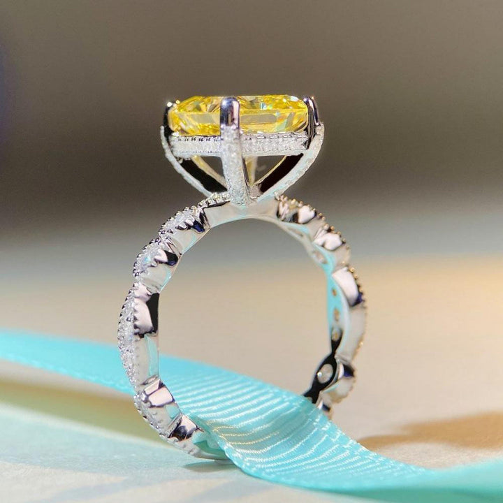 S925银欧美跨境公主方包戒指黄钻四爪钻戒戒指不掉色纯银戒指批发