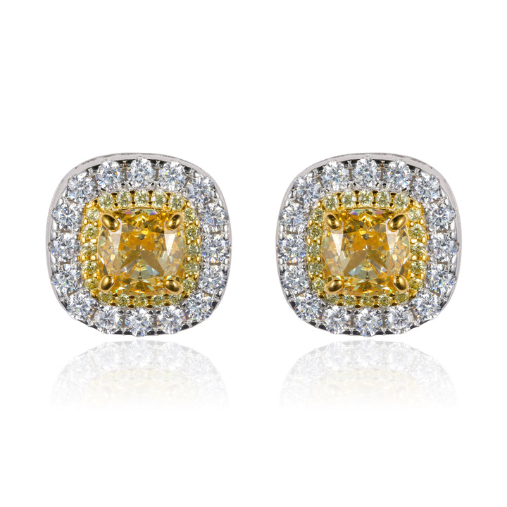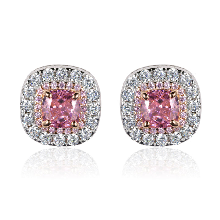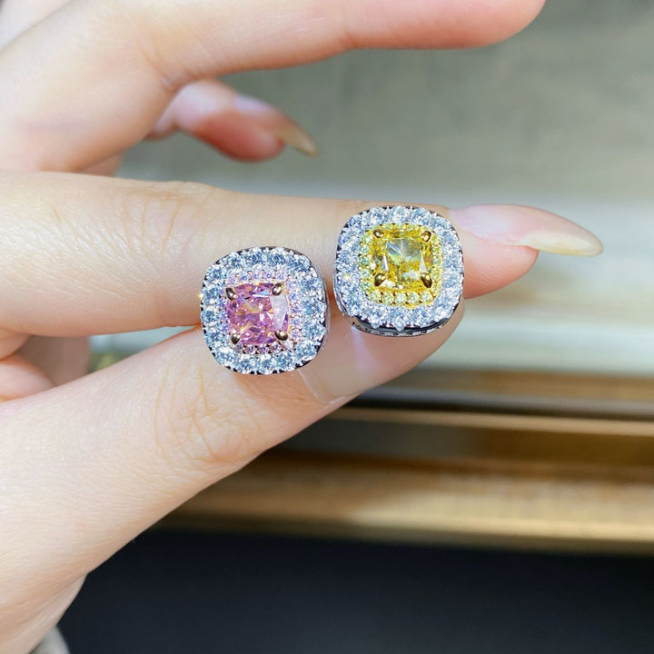 S925 pure silver ear nail women's full diamond pink diamond square bag luxurious setting explosive versatile