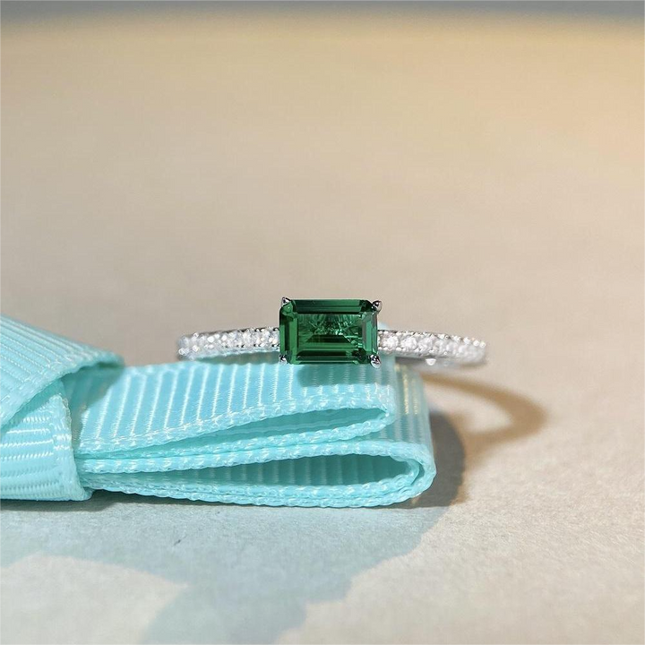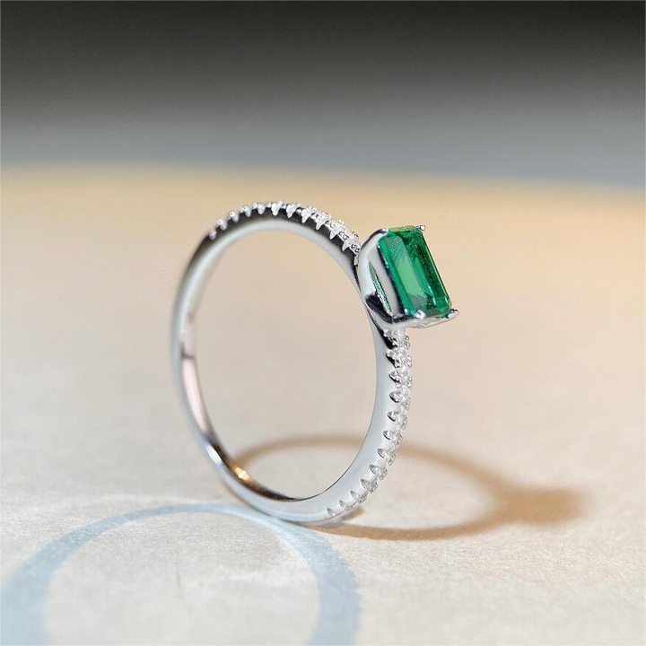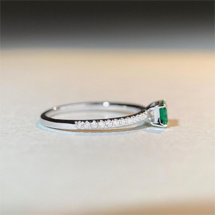 S925 pure silver emerald ring, women's high carbon diamond, Redion cut, ice flower cut, 5A zircon