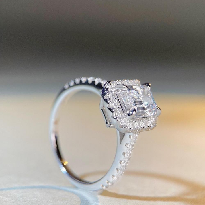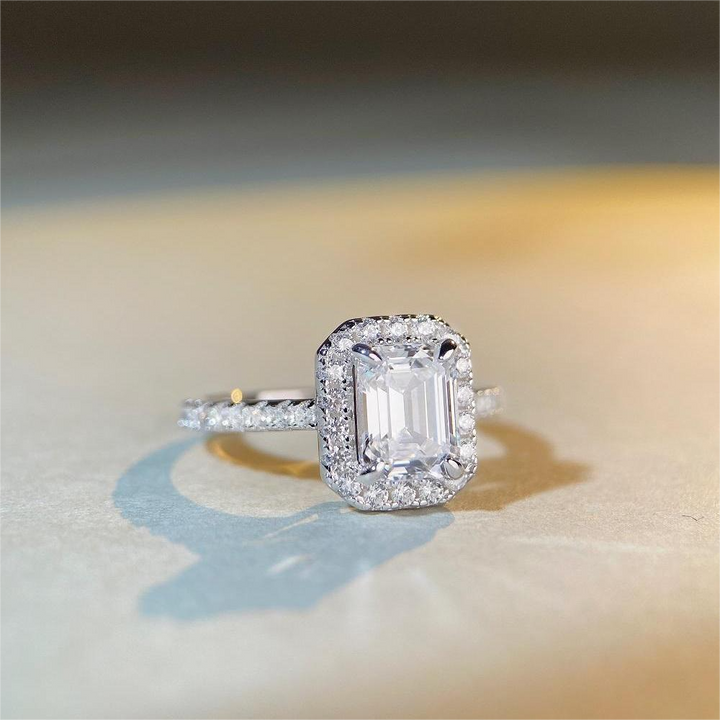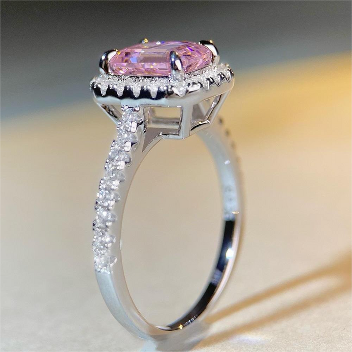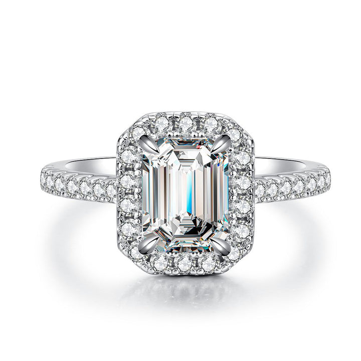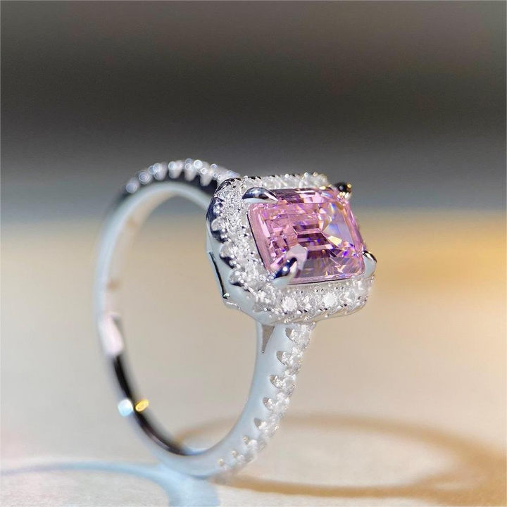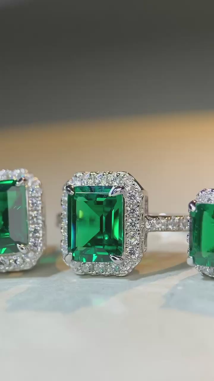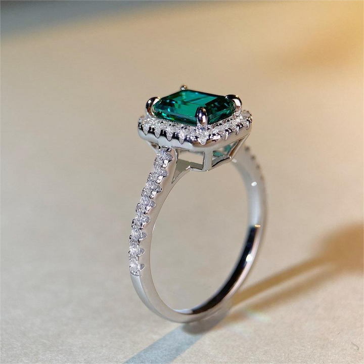 S925 pure silver green diamond ring for women, 2-carat sugar cube bag, high-end color sensitive treasure, high carbon diamond zircon ring