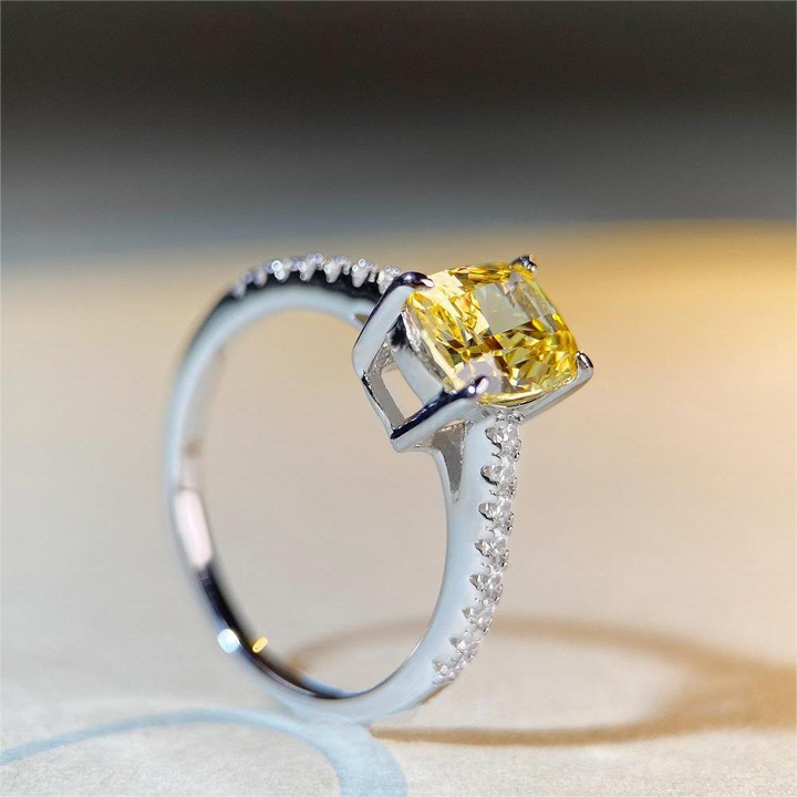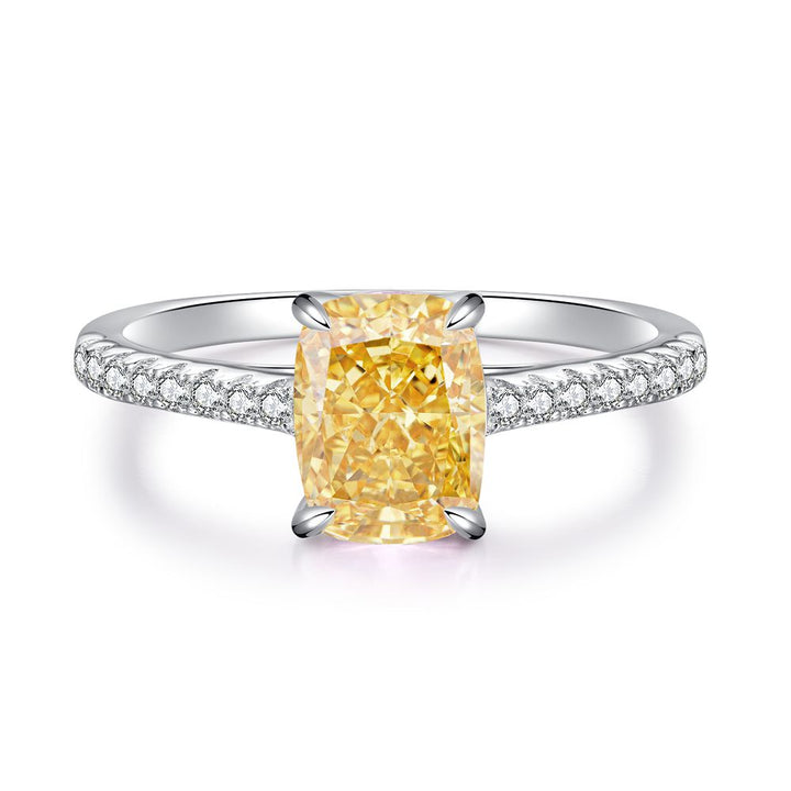 S925 pure silver high carbon diamond ring, yellow diamond Redion cut ring for women